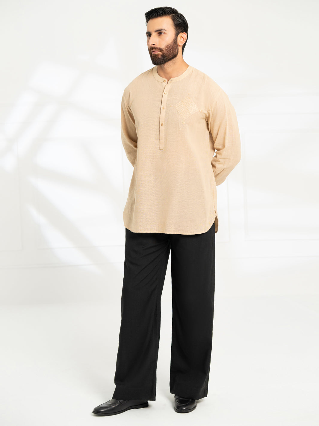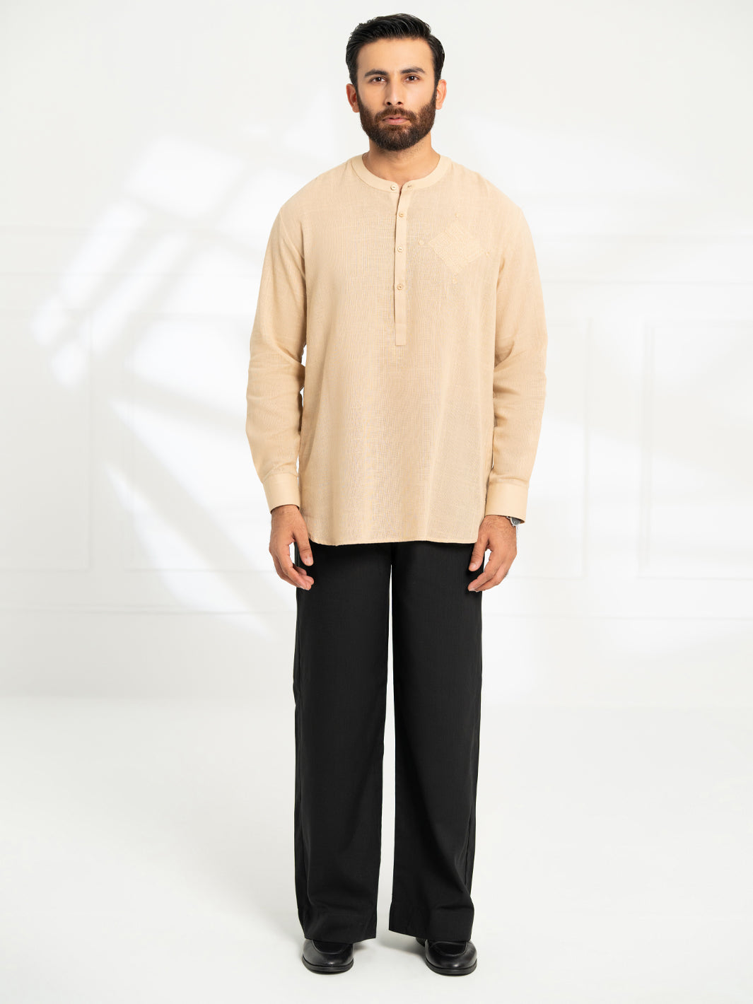 Short Semi-Formal Kurta With Refined Embroidery Detailing on the Front.