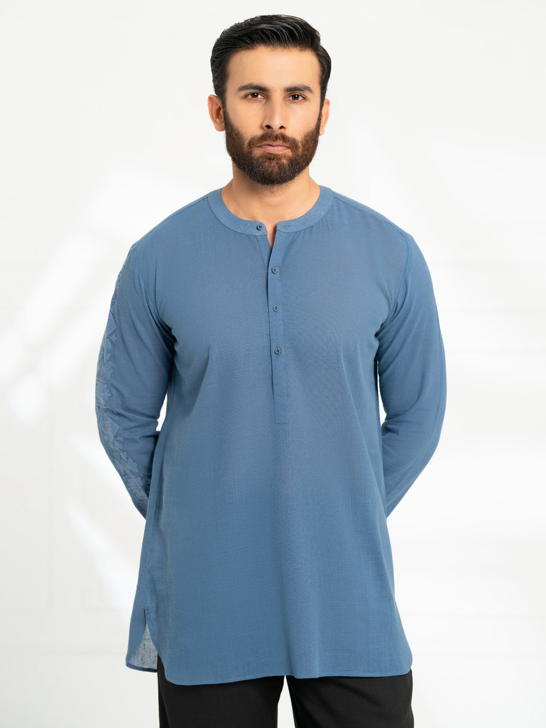 Short Semi-Formal Kurta, Adorned With Refined Sleeve Embroidery