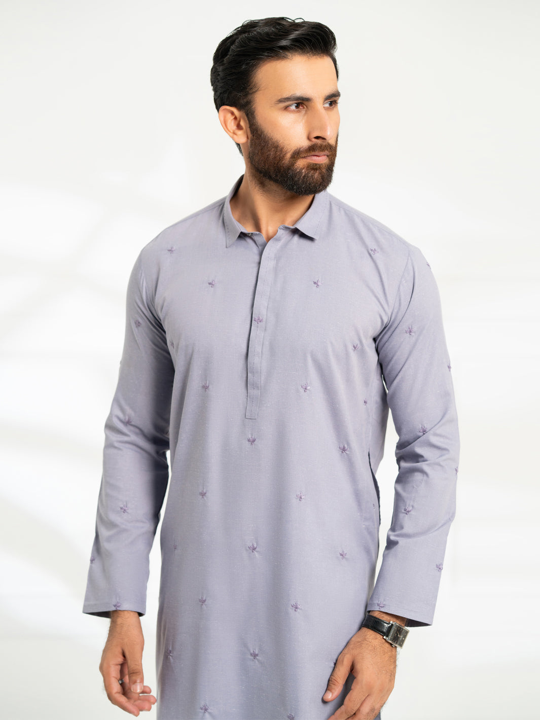 An Exquisitely Tailored Semi-Formal Kurta Adorned With Intricate Embroidered Detailing