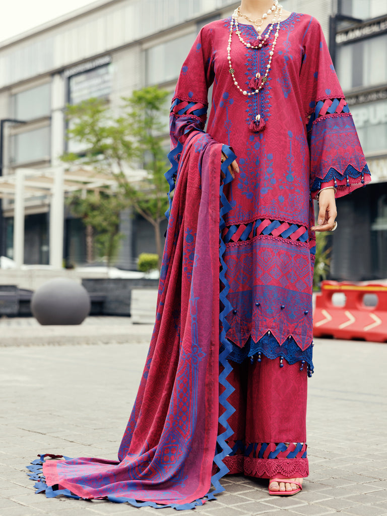FUCHSIA CAMBRIC 3PC UNSTITCHED | ALP-3PS-2211 FB-2211A