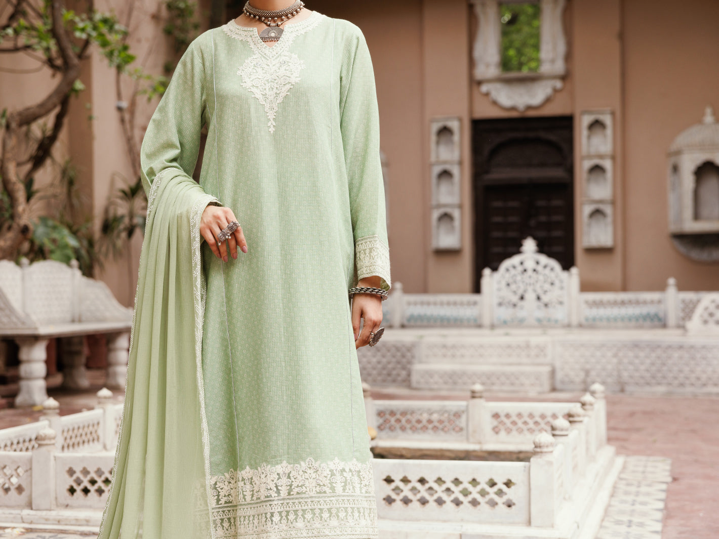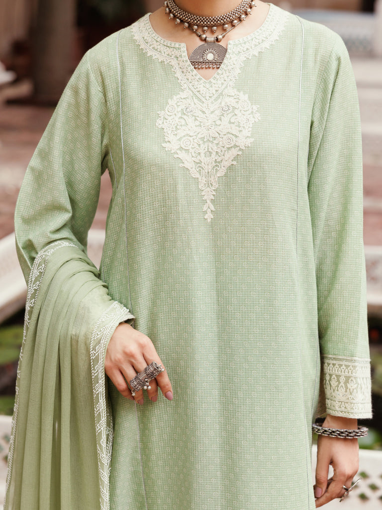 LIGHT GREEN COTTON DOBBY 3PC UNSTITCHED | ALP-3PS-2049 FB-2049A