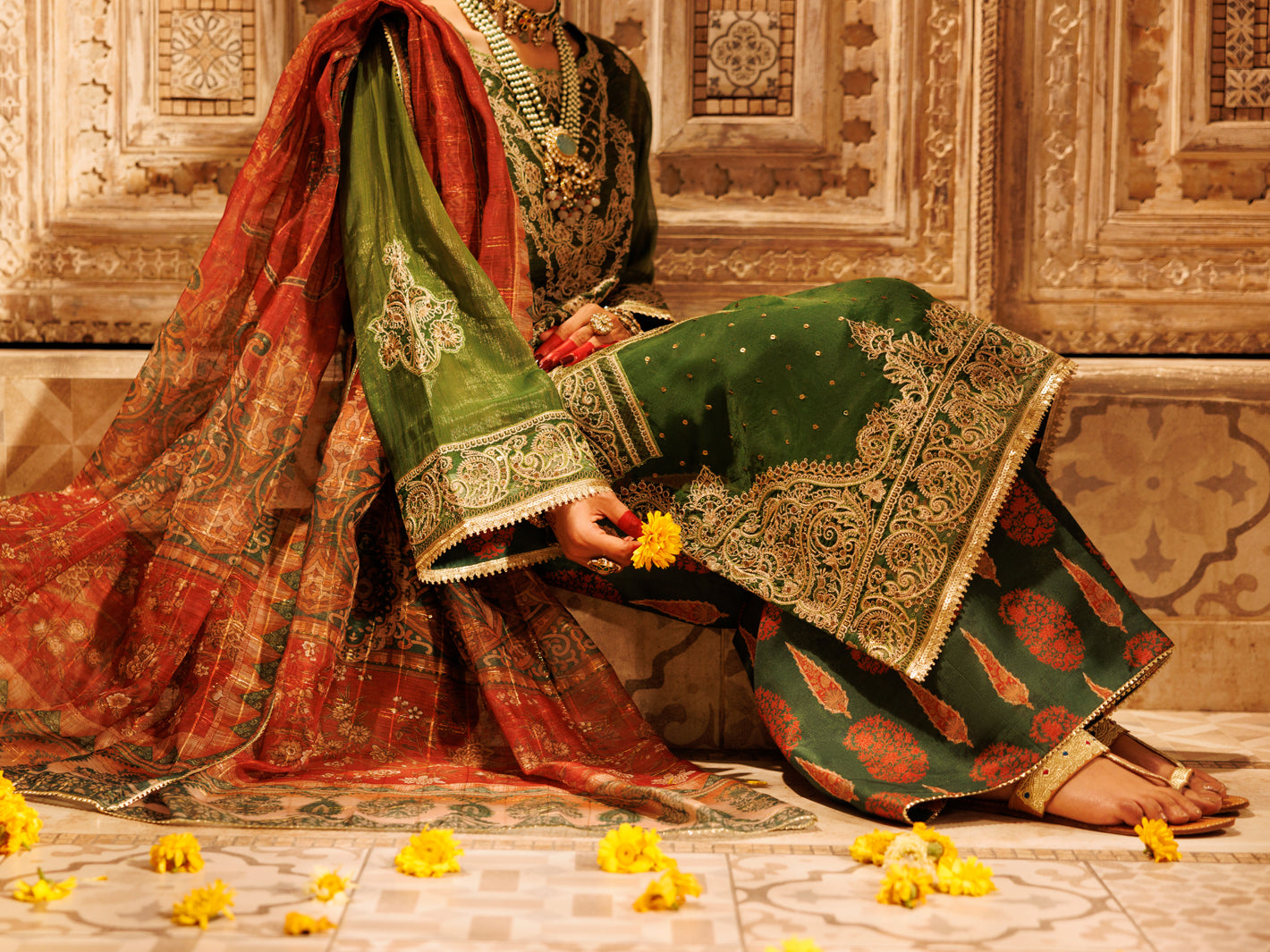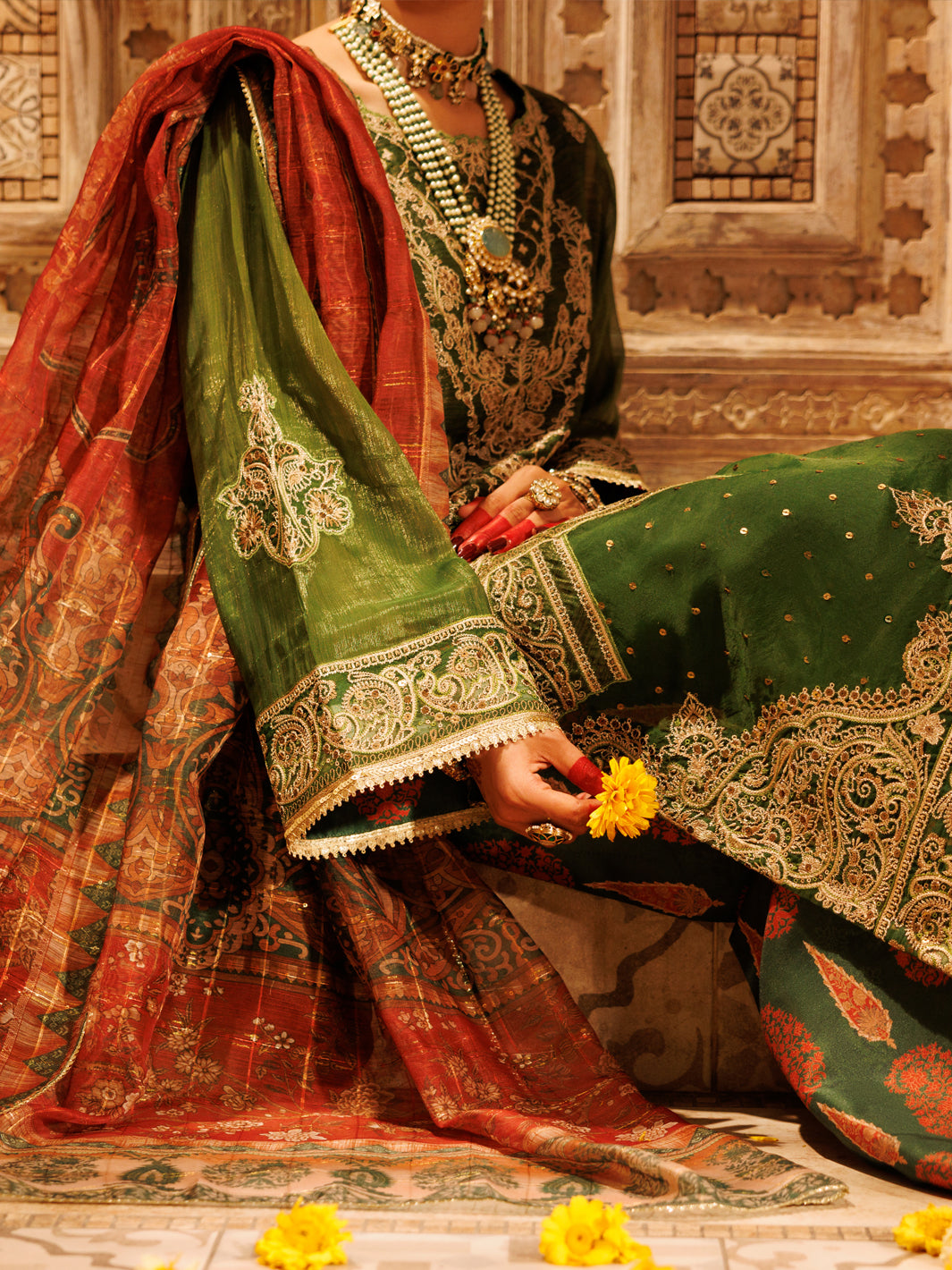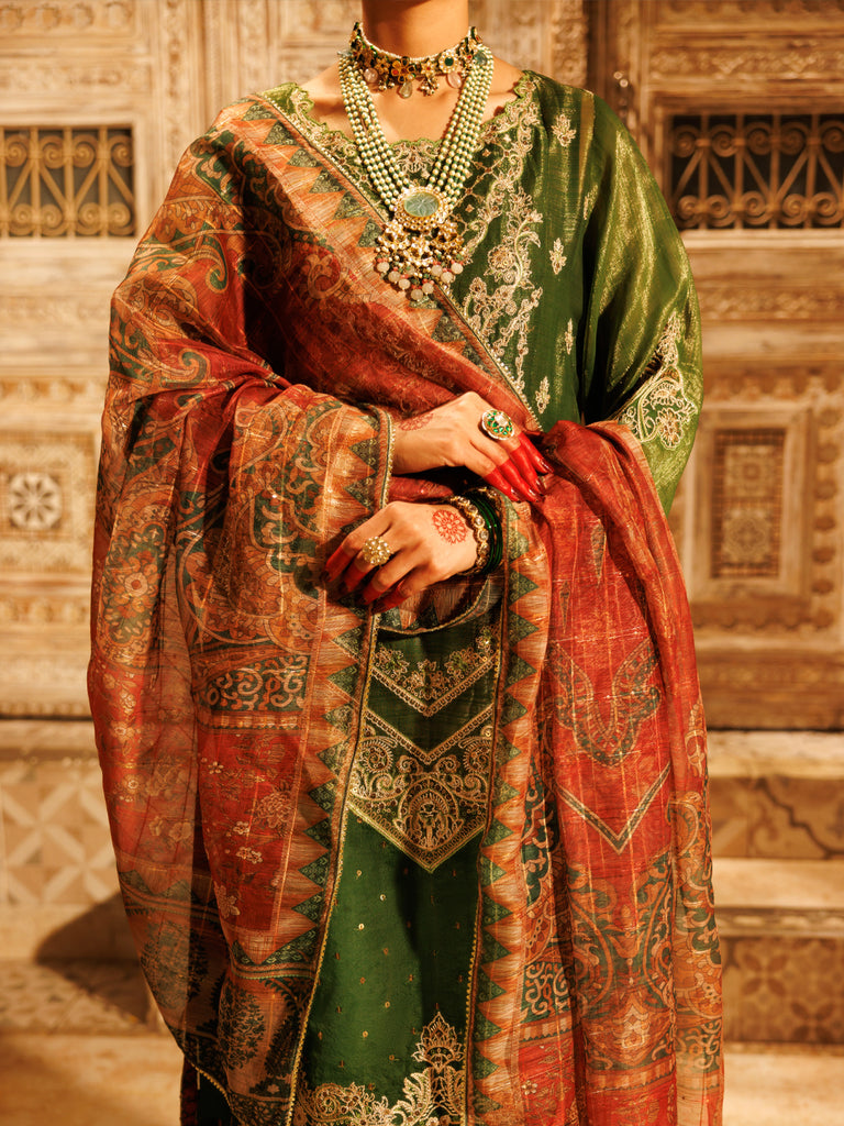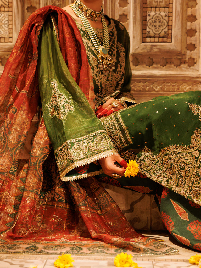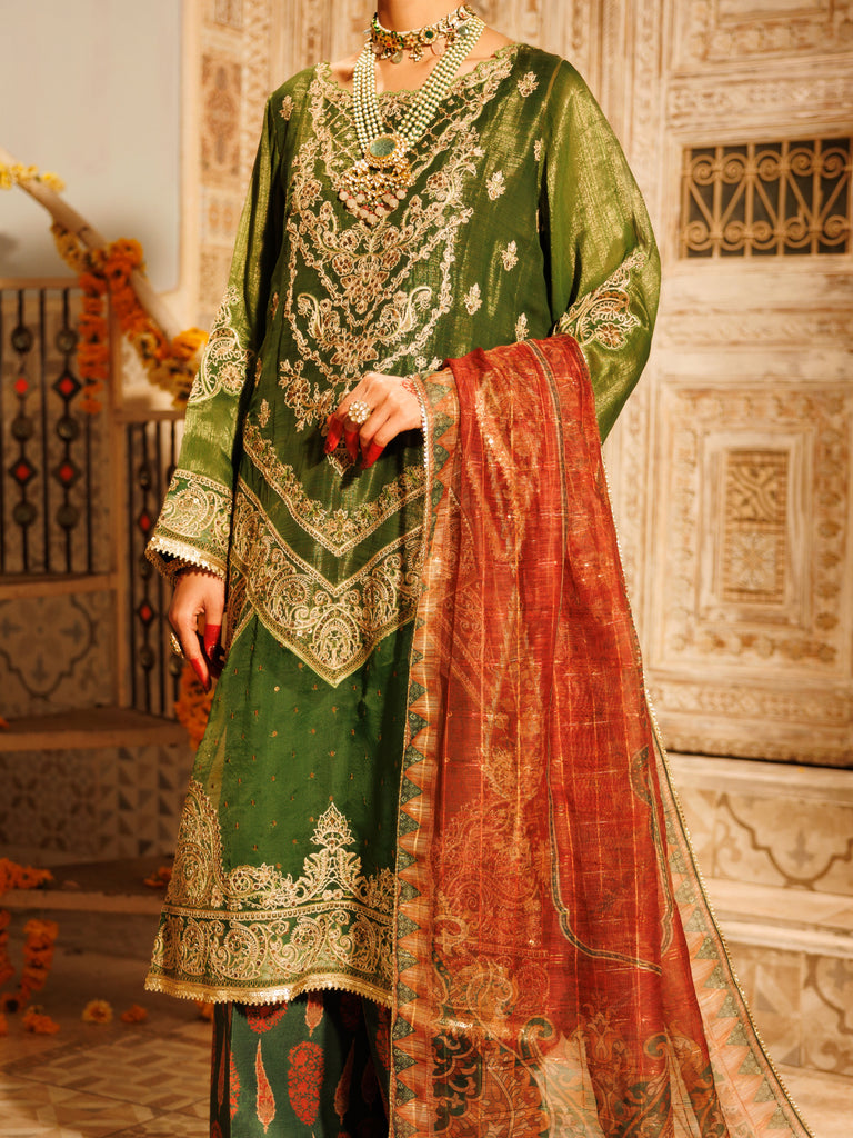 MEHNDI GREEN MESURI NET 3PC STITCHED | AL-3PS-LS-550/FB-550A