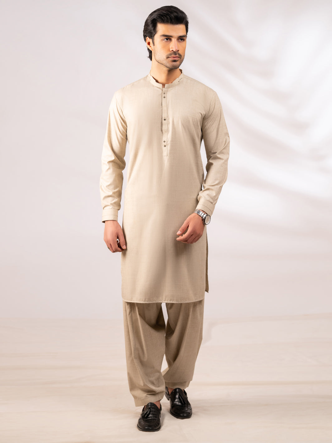 BEIGE BLENDED KAMEEZ SHALWAR | AL-KS-3258/AM-6209-A2