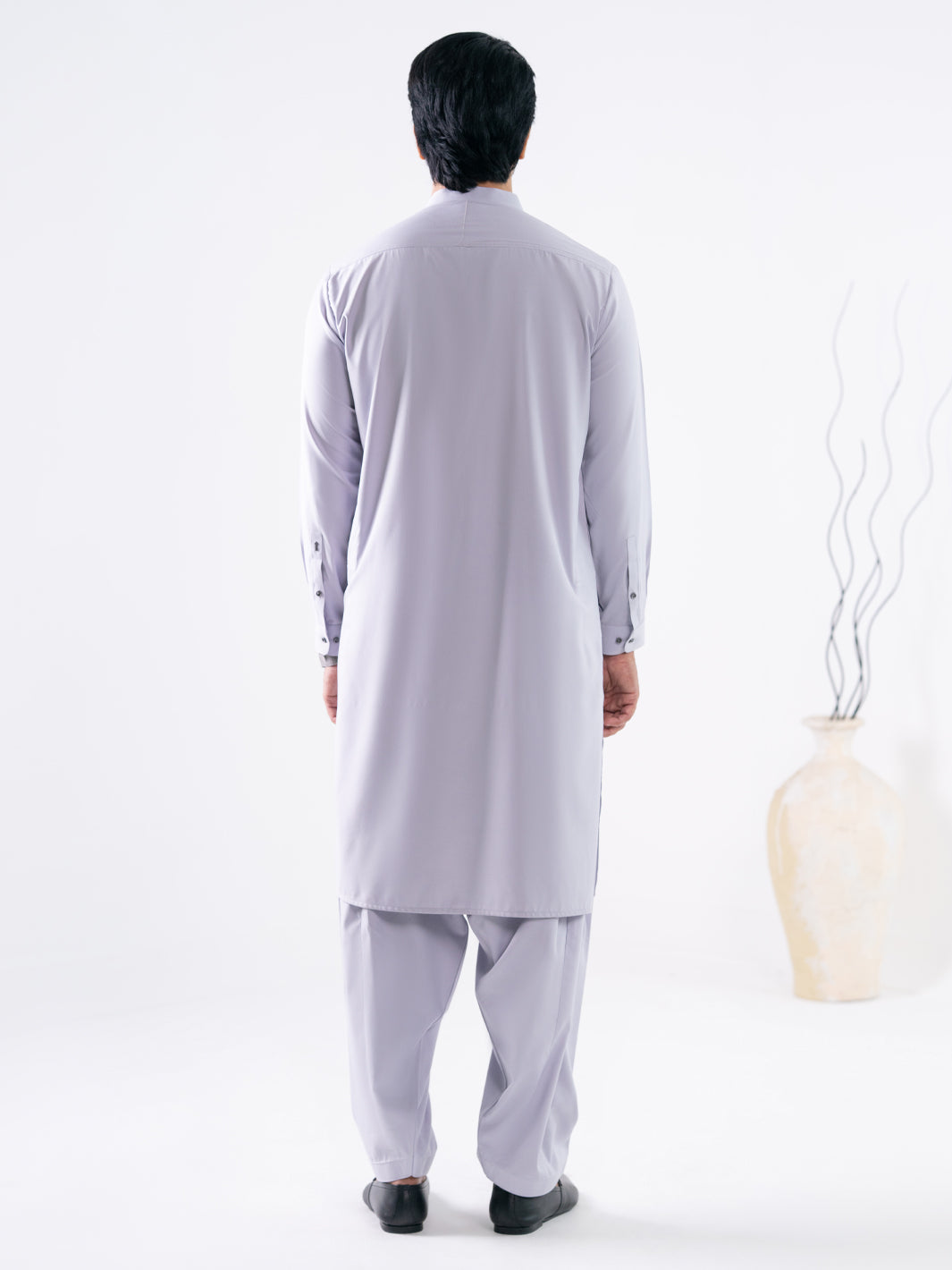 Lilac Cut And Sew Kameez Shalwar With Stitch And Patch Details On Invisible Placket
