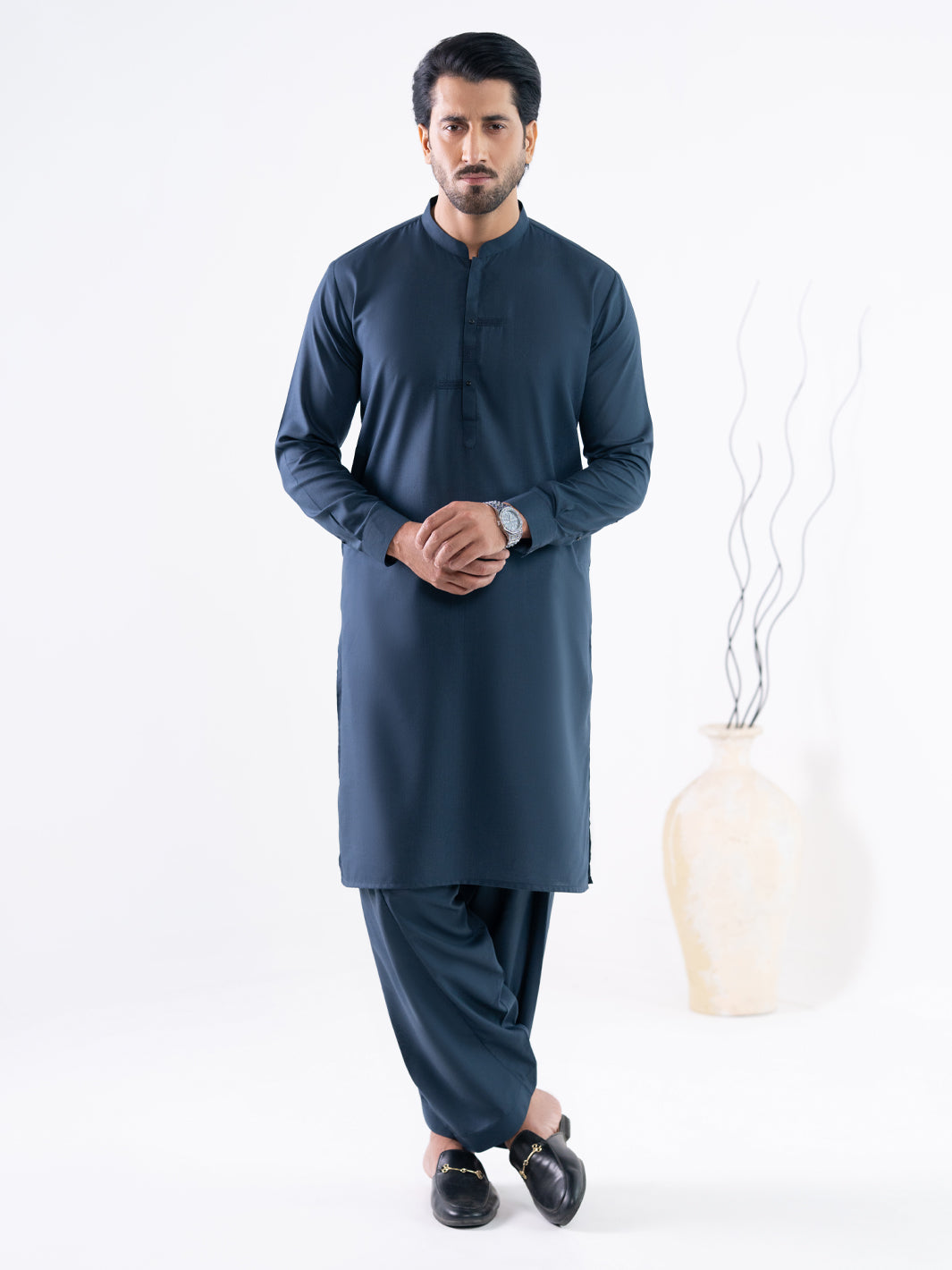 DARK BLUE BLENDED KAMEEZ SHALWAR | AL-KS-3297/AM-6338D