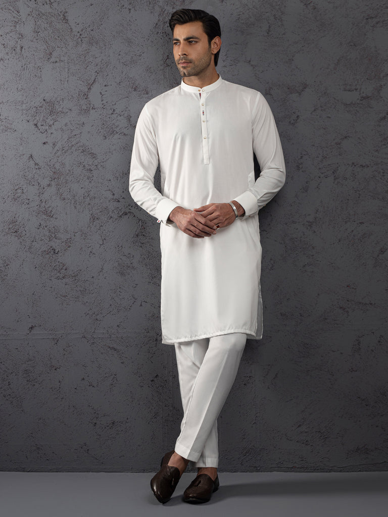 WHITE BLENDED KURTA TROUSERS | ALET-KT-1001-R3/AM-6285A