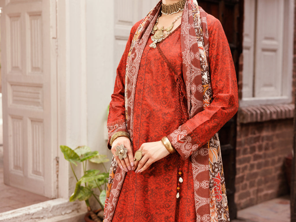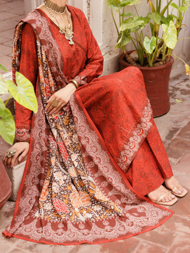 MAROON PRINTED LAWN 3PC STITCHED | ALP-3PS-2144/S FB-2144A