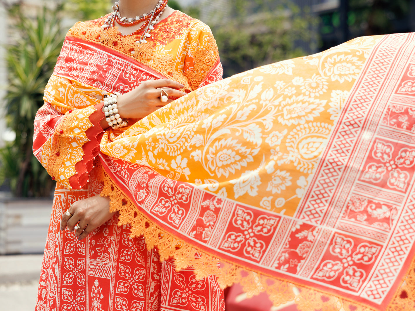 ORANGE CAMBRIC 3PC UNSTITCHED | ALP-3PS-2210 FB-2210A