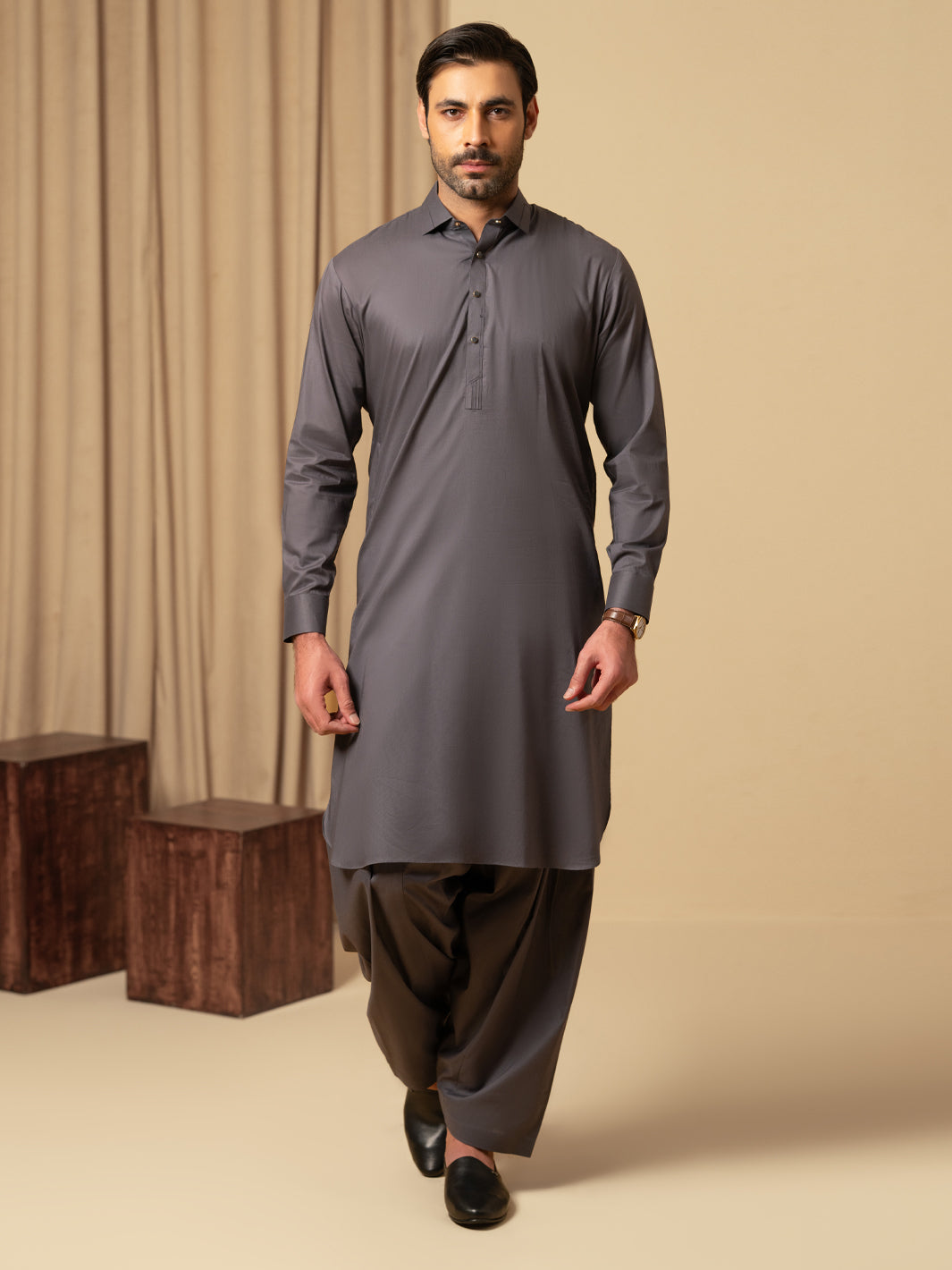 GREY COTTON KAMEEZ SHALWAR | ALWA-KS-576/AM-6347A