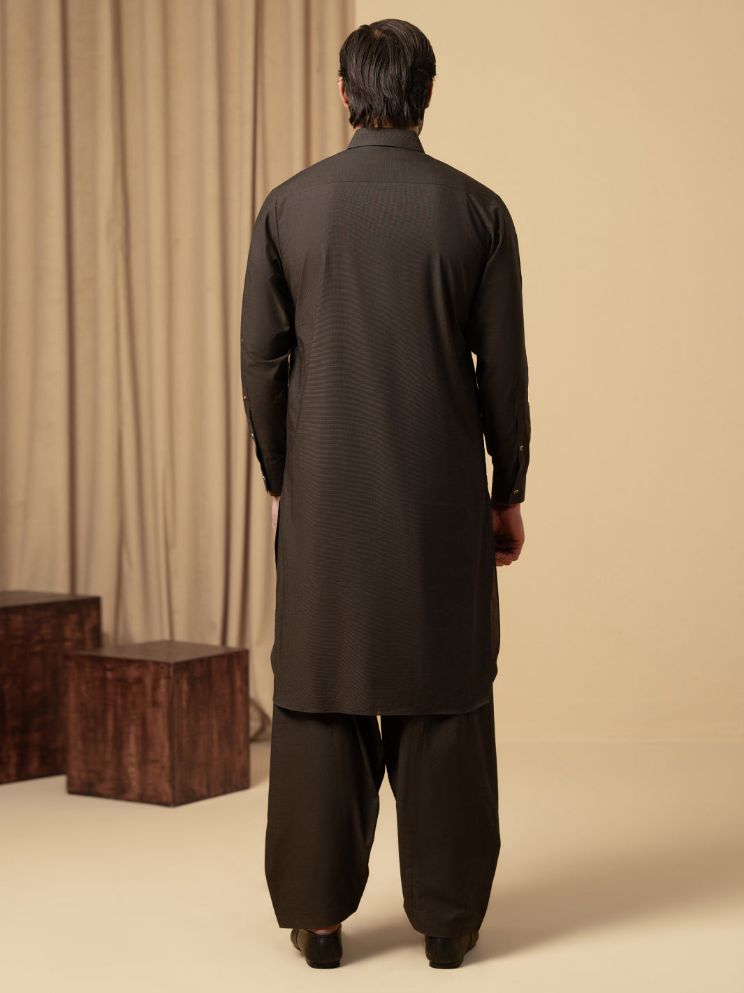 DARK BROWN COTTON KAMEEZ SHALWAR | ALWA-KS-587/AM-6345C