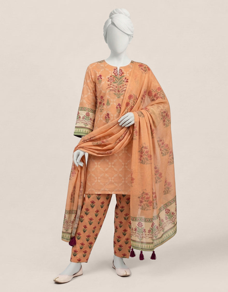 PEACH LAWN 3PC STITCHED | JGK-S-JTP-26-666 FB/GOOD EARTH-2