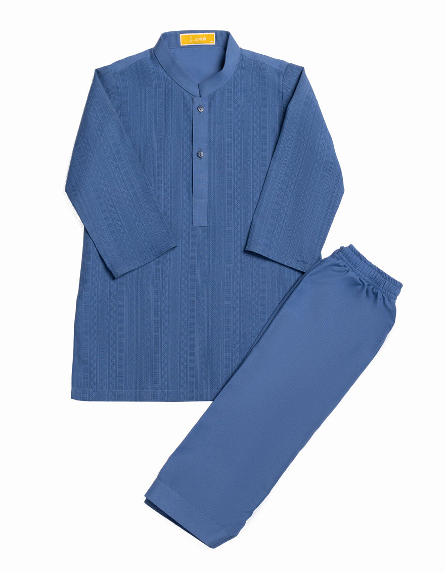 Made for comfort and ease, this blue semi-formal kameez shalwar features soft stitching and a gentle design touch. The subtle patterns and button details add a graceful look without causing any fuss. Ideal for little ones who need free movement with a neat appearance.