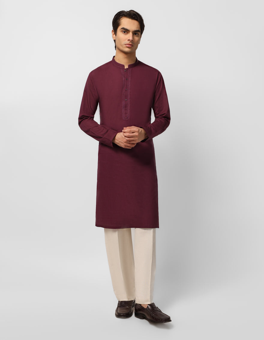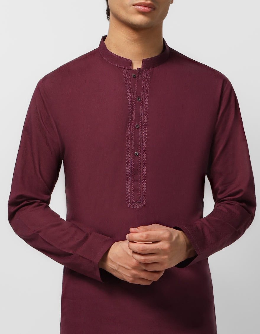 BURGUNDY COTTON KURTA | JTK-S-20031/S26/JJ10899-CL