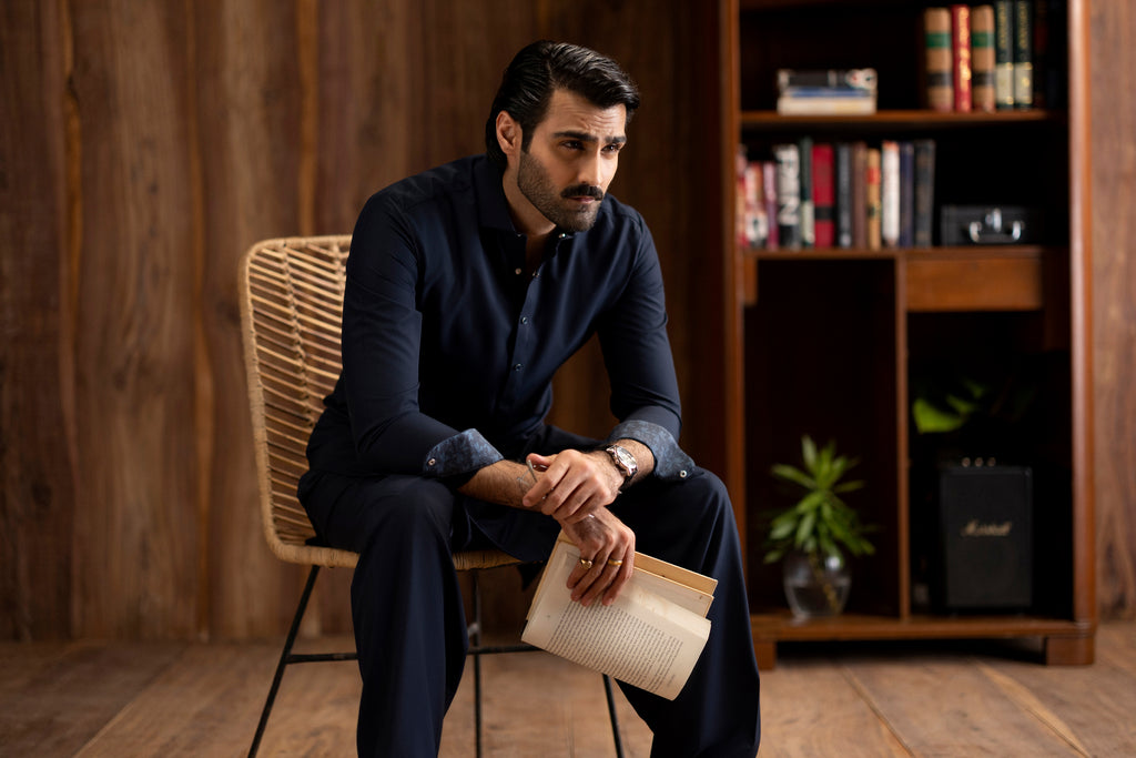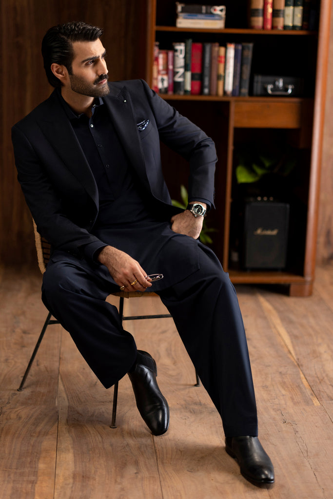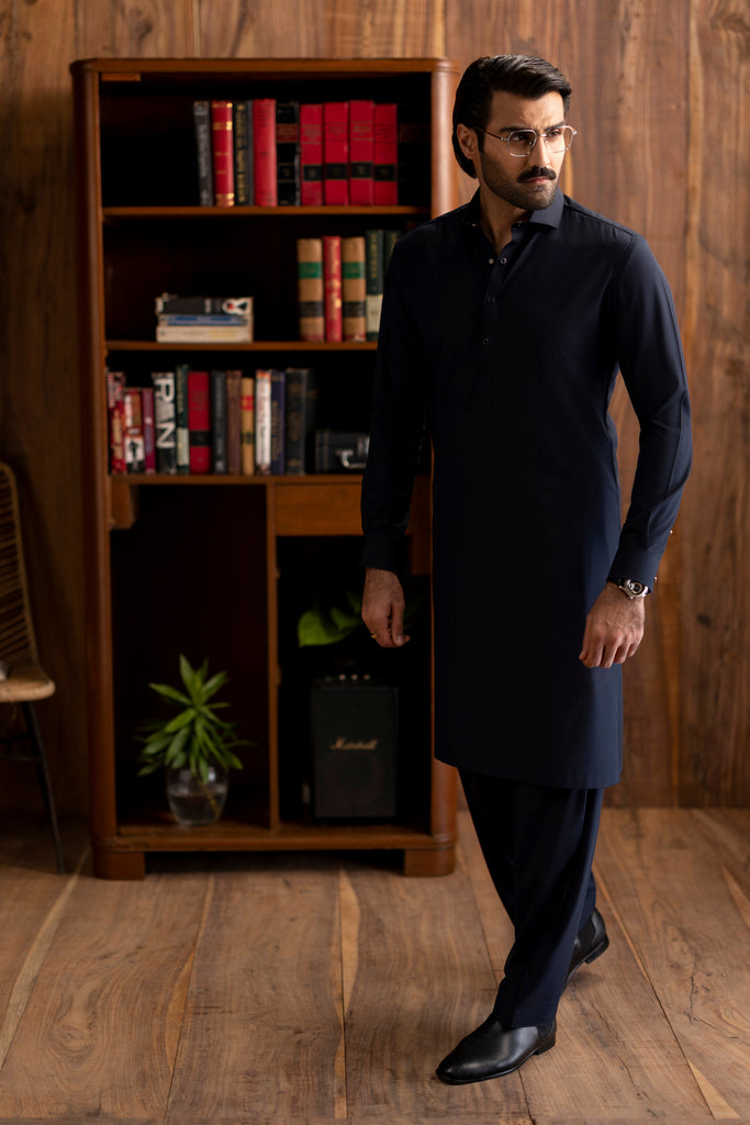NAVY BLENDED KAMEEZ SHALWAR | CCMKS-S-39613-A4