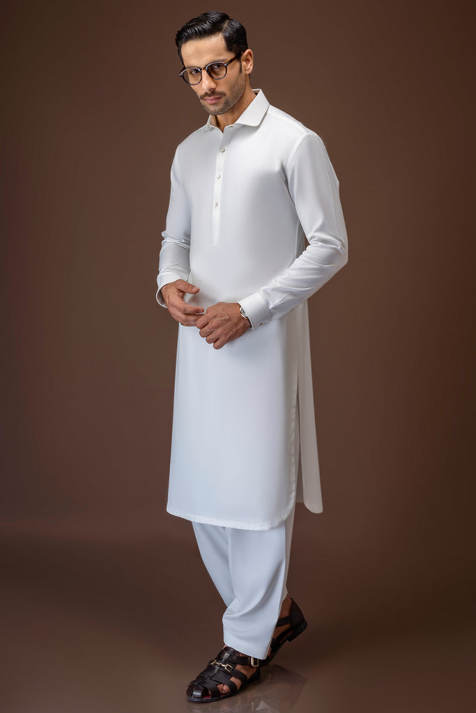 OFF WHITE BLENDED KAMEEZ SHALWAR | CCMKS-S-39602-B4