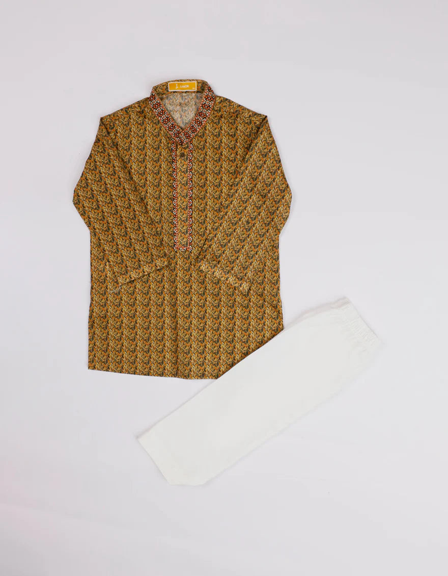 Made for comfort and ease, this Kameez Shalwar features soft stitching and a gentle design touch. The subtle patterns and button details add a graceful look without causing any fuss. Ideal for little ones who need free movement with a neat appearance.