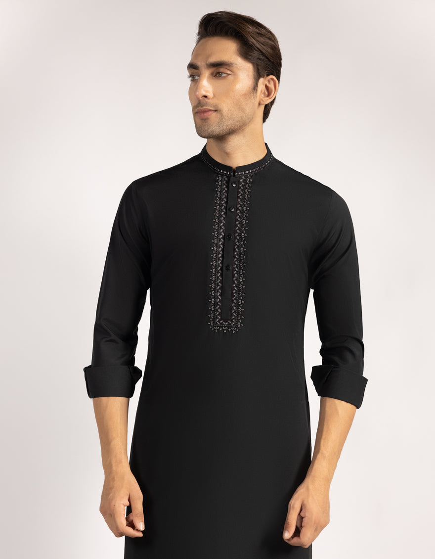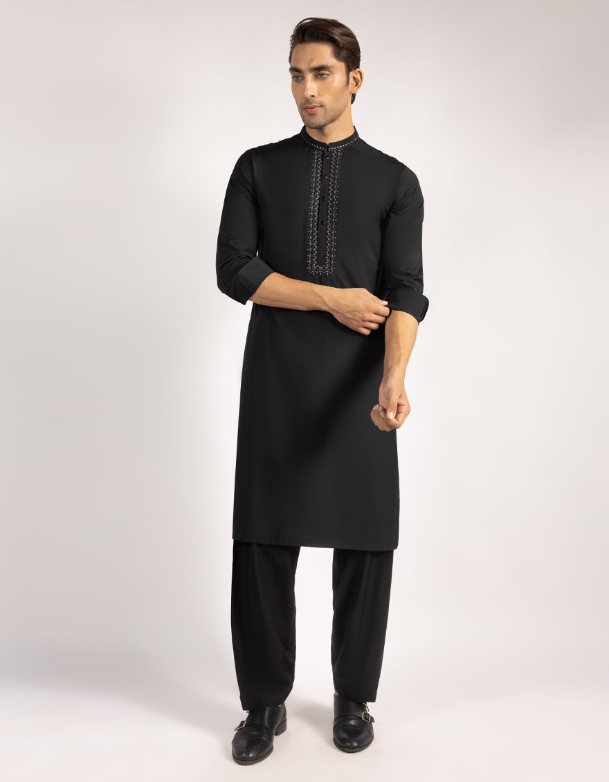 A classic eastern wear set designed with clean stitching and thoughtful detailing. The Black Blended Formal Kameez Shalwar offers a neat look & comfortable fit - ideal for long wear, daily use, or special occasions with a touch of tradition.