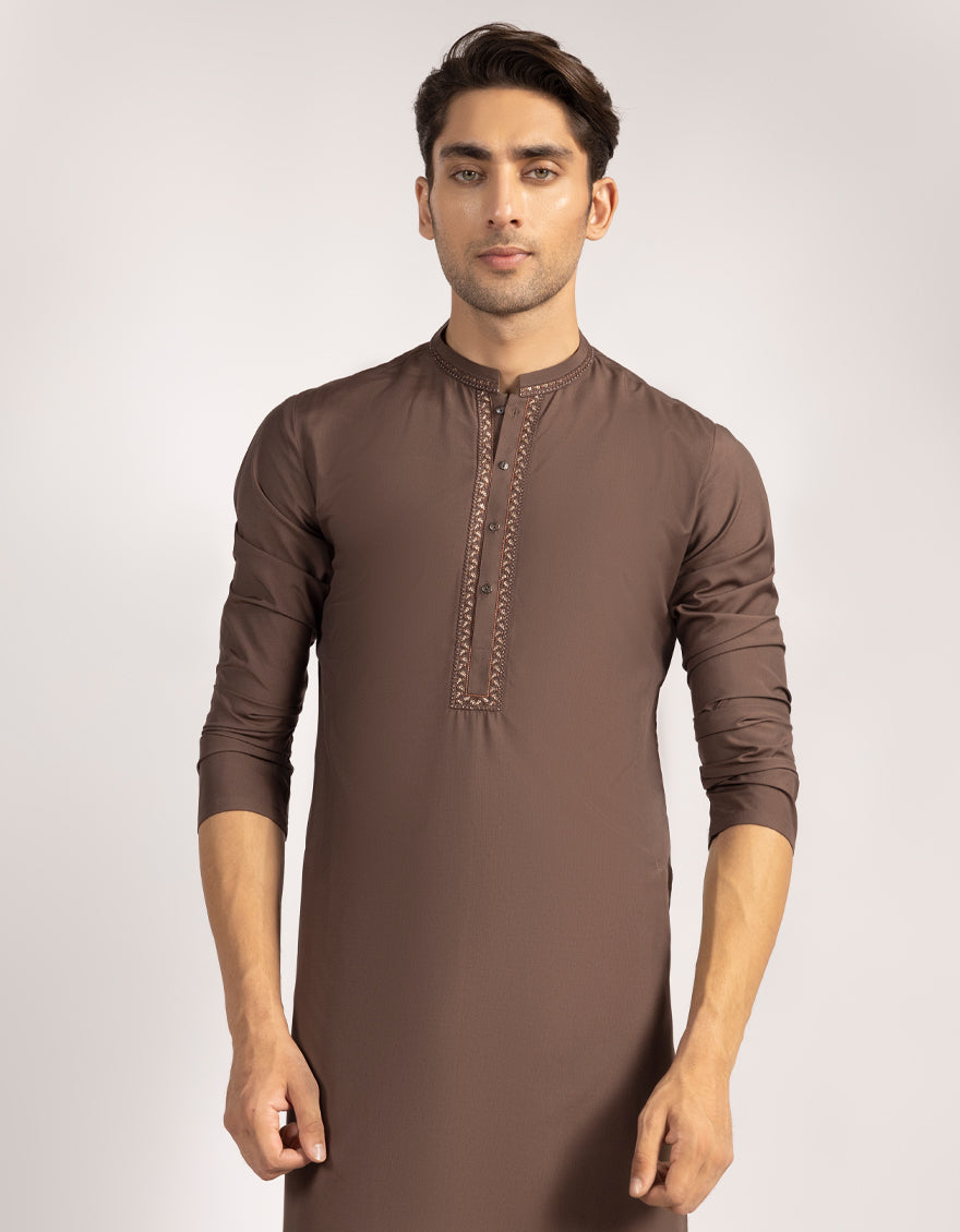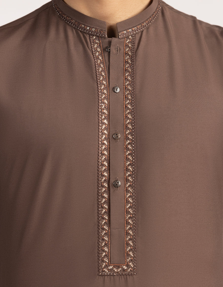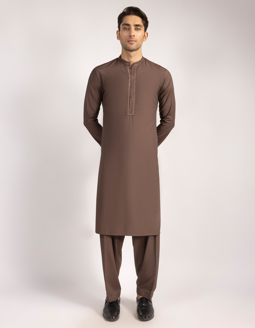 A classic eastern wear set designed with clean stitching and thoughtful detailing. The Brown Blended Formal Kameez Shalwar offers a neat look & comfortable fit - ideal for long wear, daily use, or special occasions with a touch of tradition.