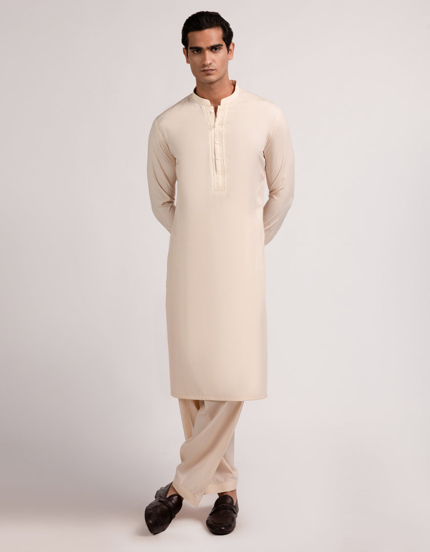A classic eastern wear set designed with clean stitching and thoughtful detailing. The Fawn Blended Formal Kameez Shalwar offers a neat look & comfortable fit - ideal for long wear, daily use, or special occasions with a touch of tradition.