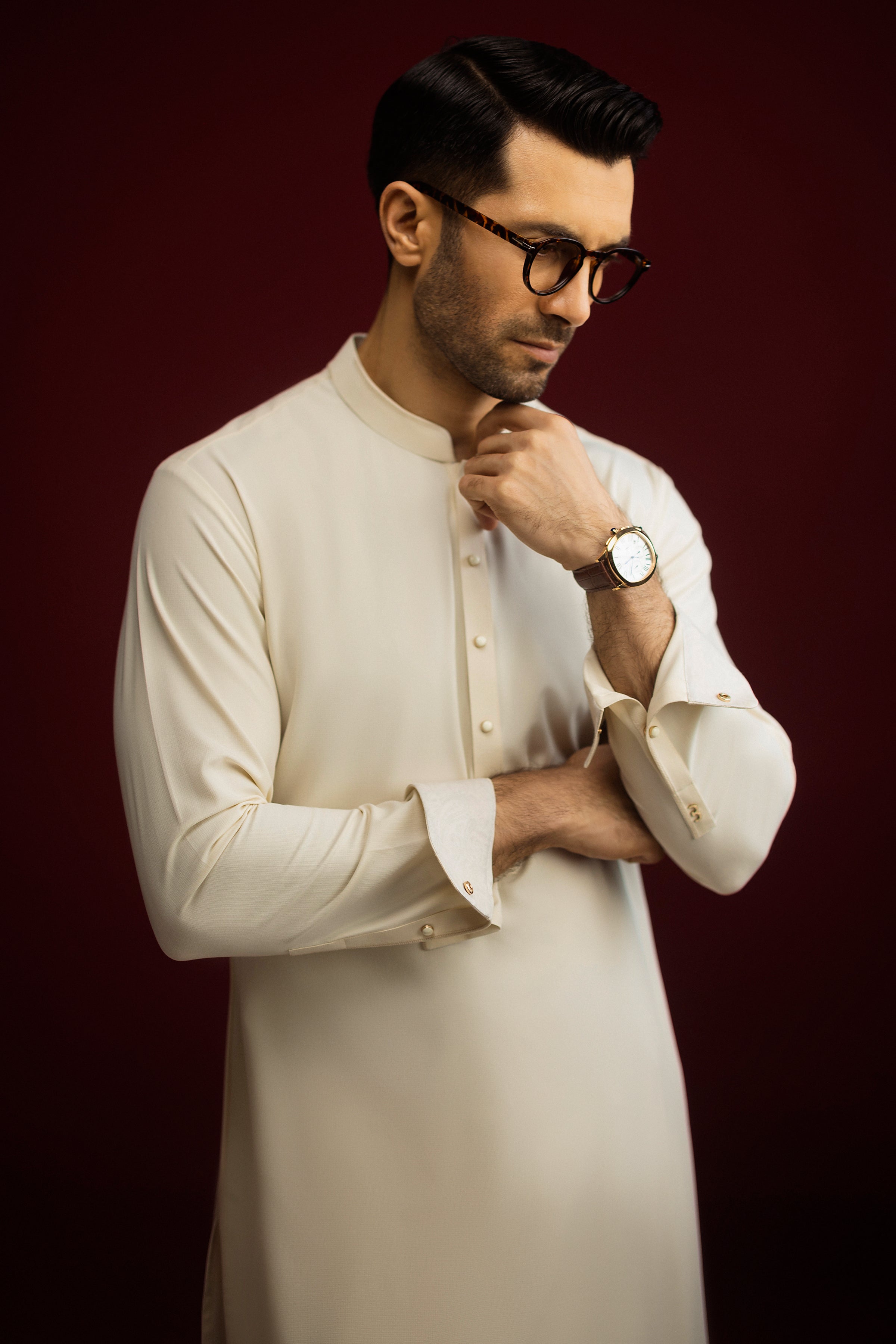p>Embroidery at Collar, Back Yoke, Cuffs and Sleeves Vent Square Hem.