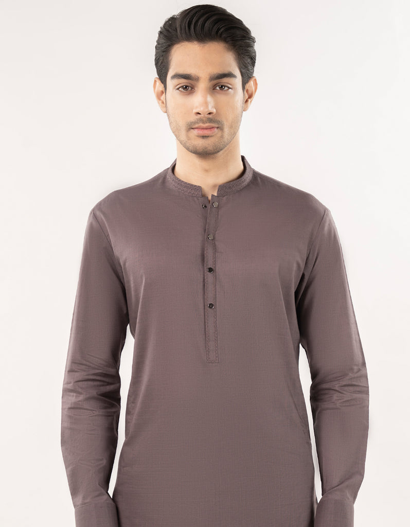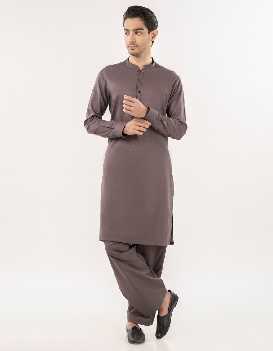 This brown blended semi-formal kameez shalwar offers a neat, stylish look that works well for family gatherings, dinners, or casual events. Easy to wear and effortlessly smart.