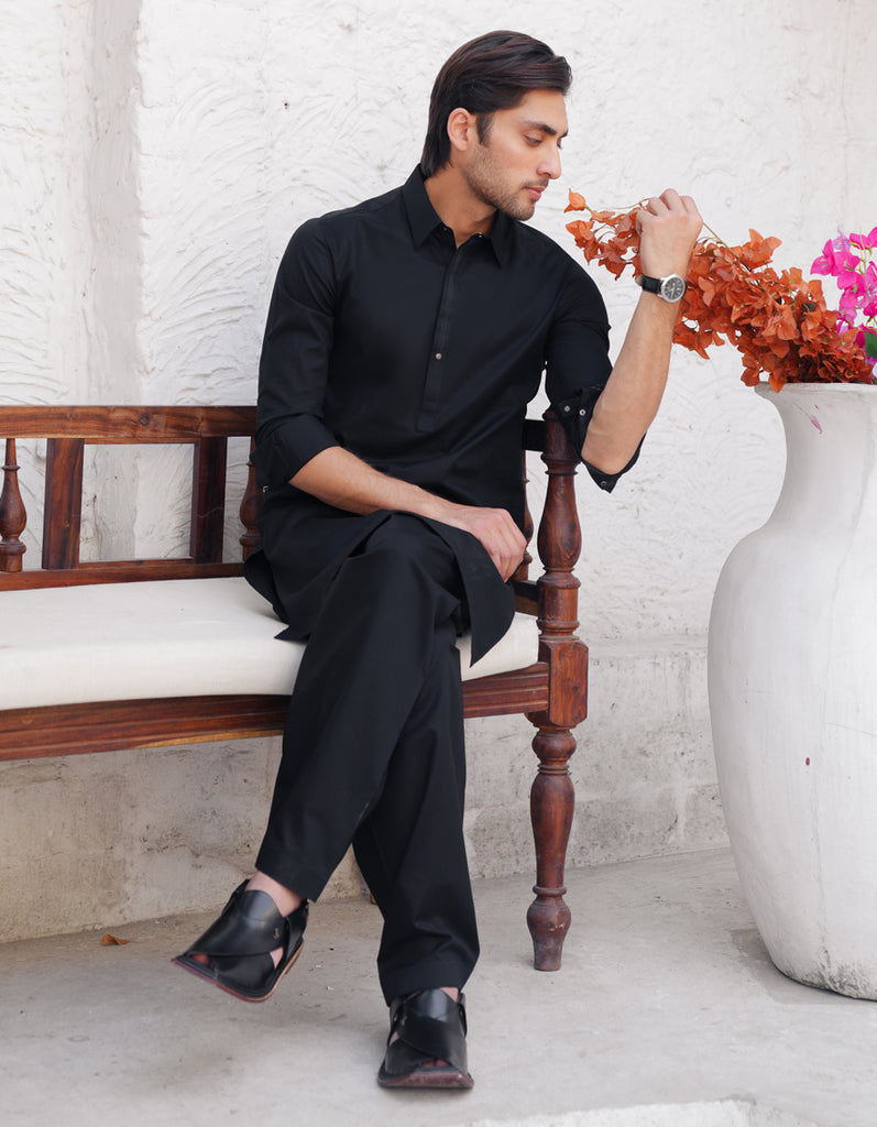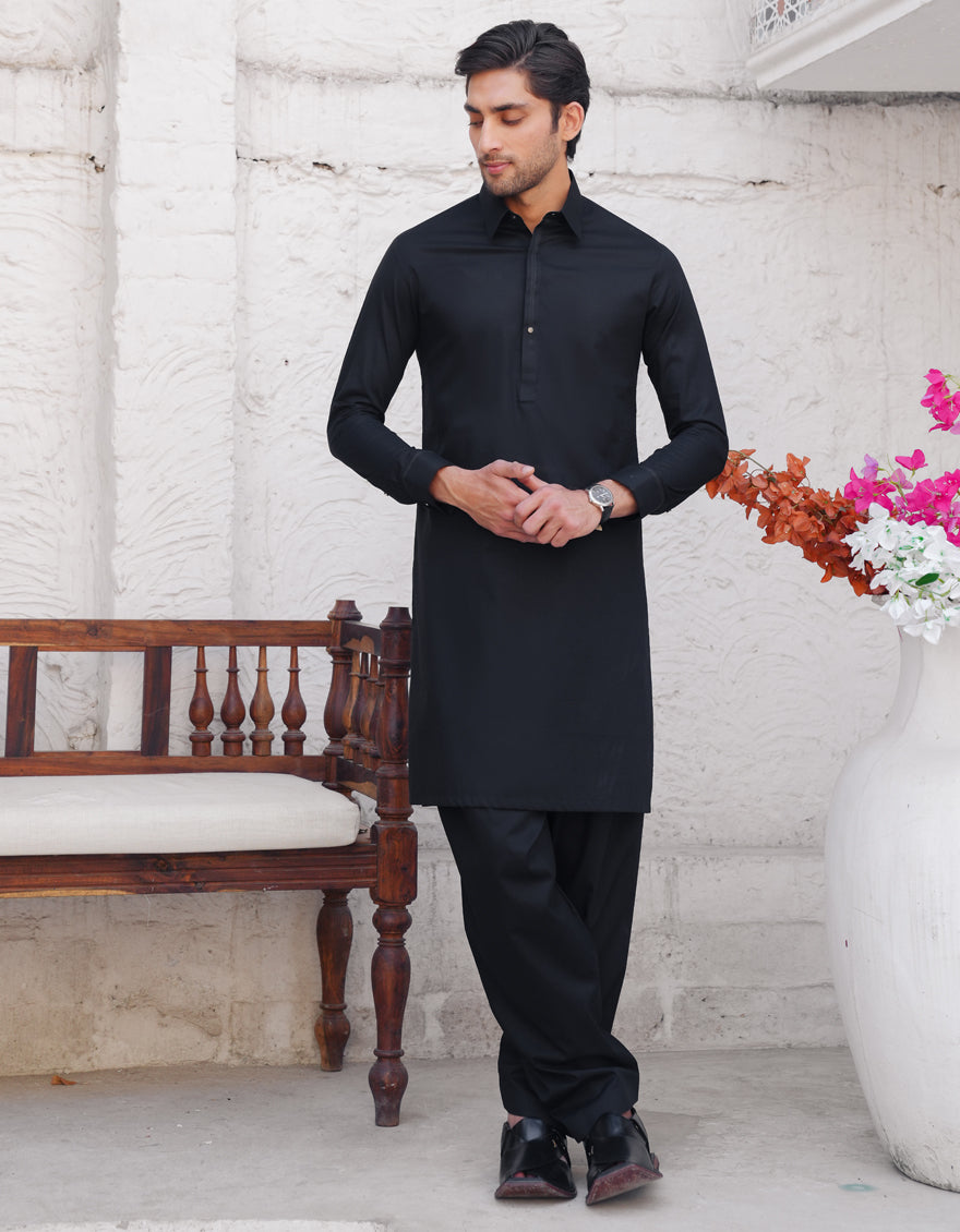 Simple yet stylish, this Black Cotton Casual Kameez Shalwar offers timeless elegance and versatility, perfect for a range of occasions and settings.
