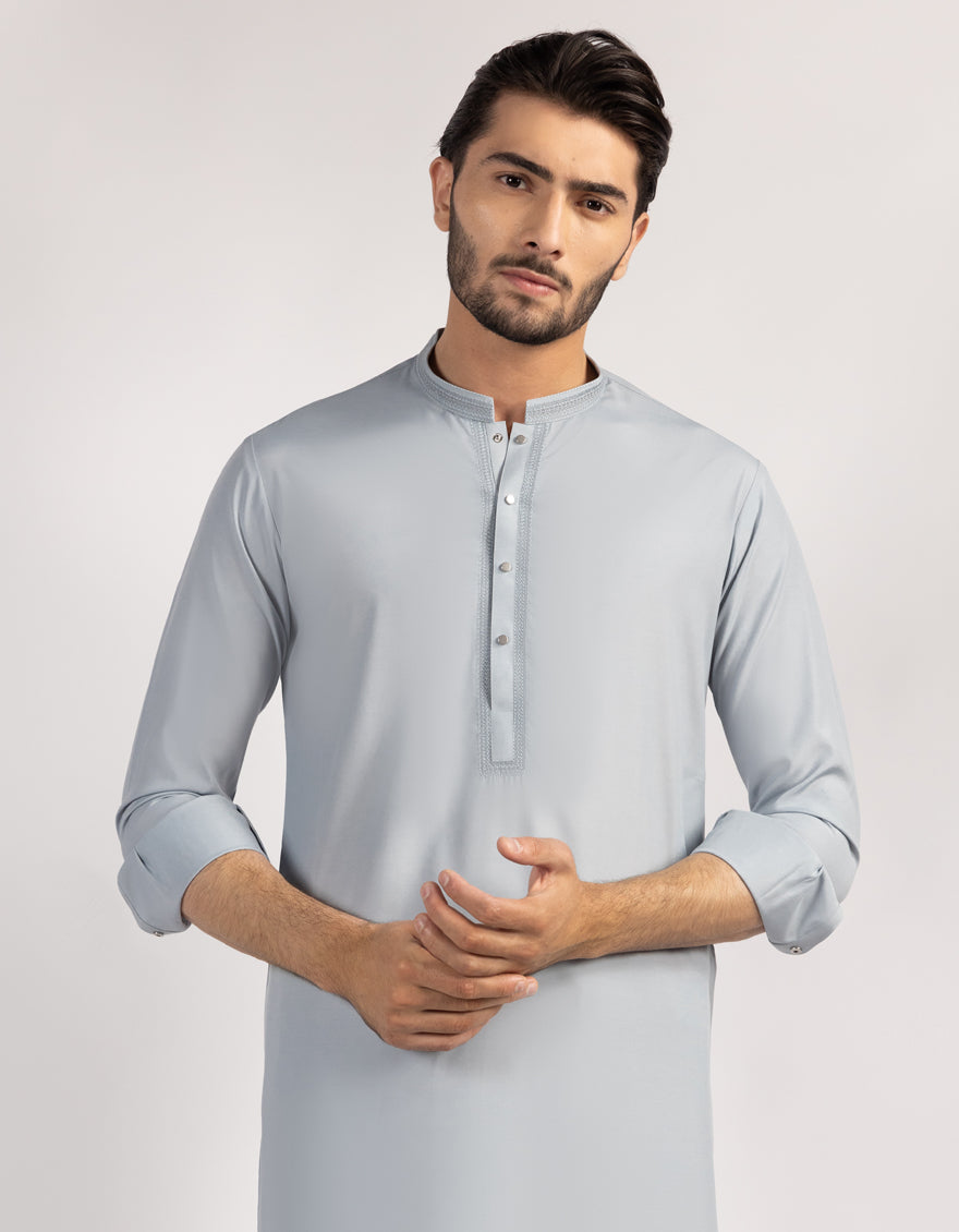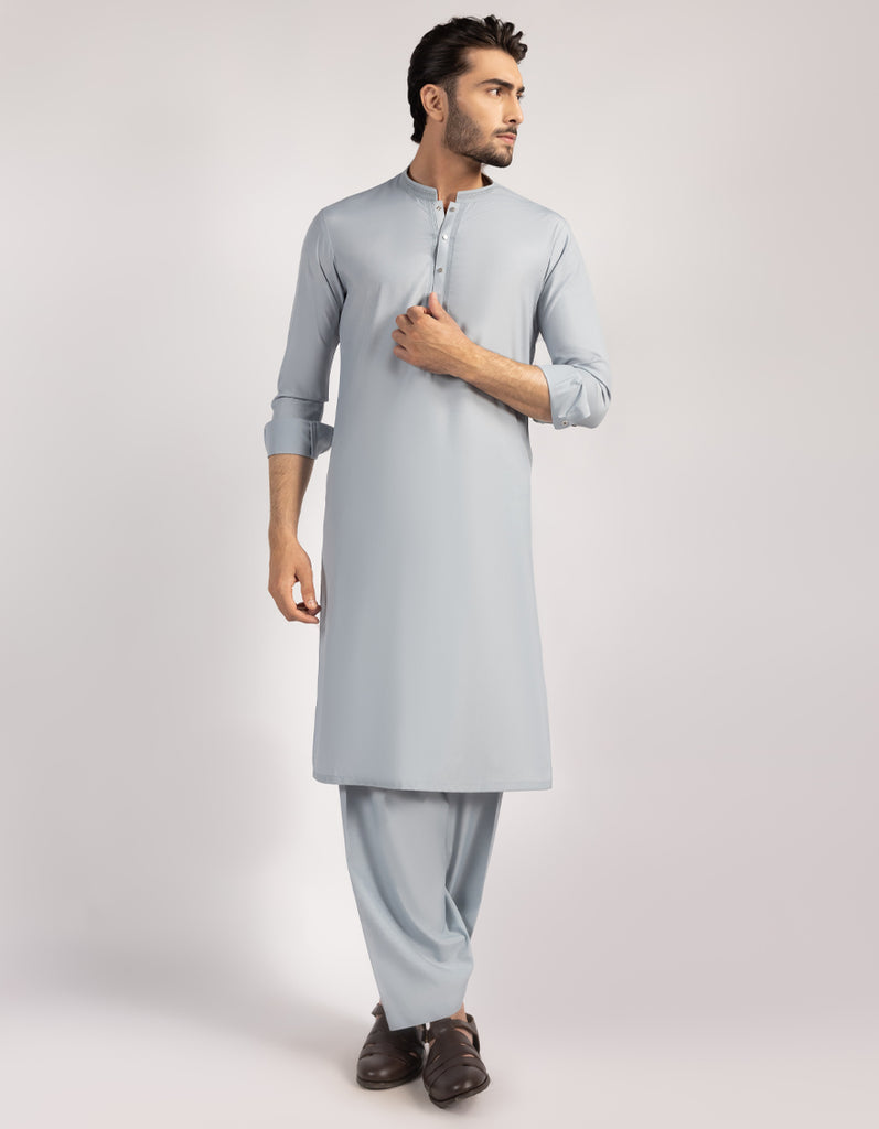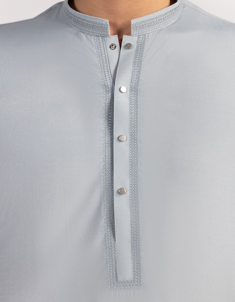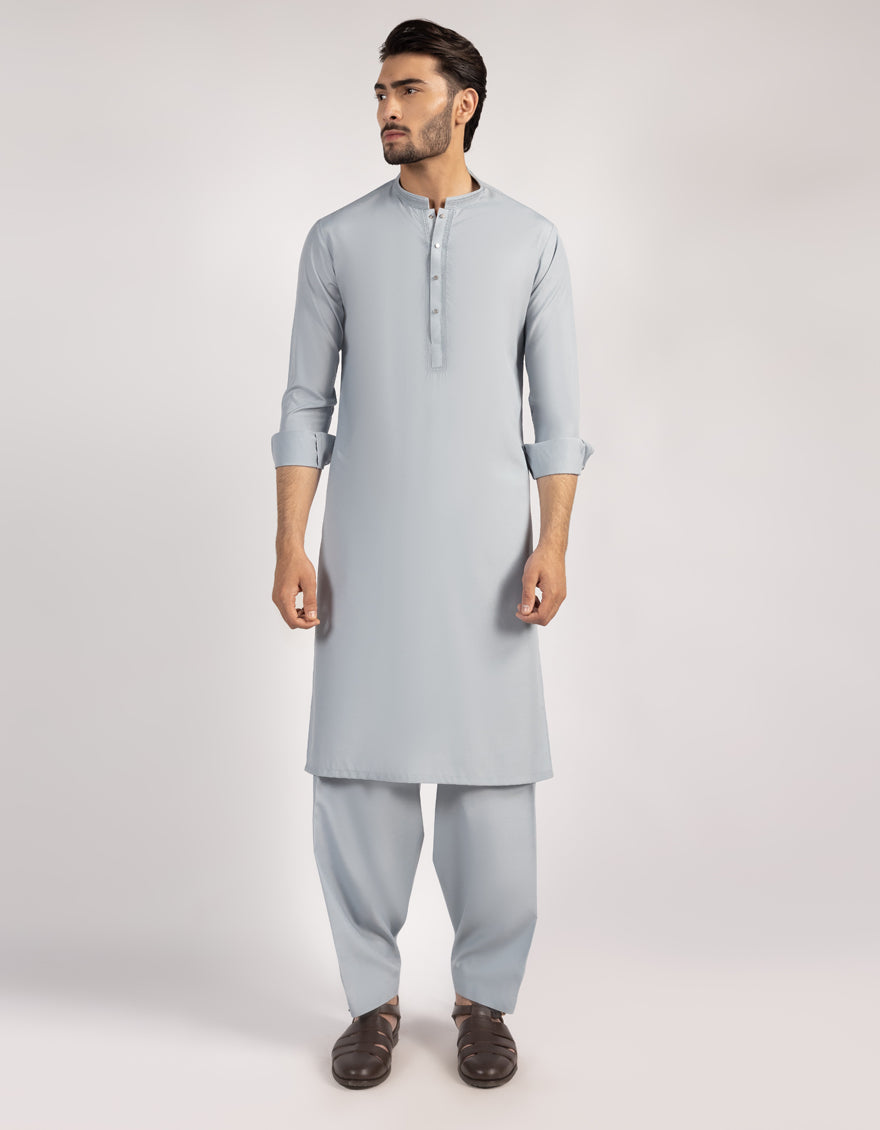 A classic eastern wear set designed with clean stitching and thoughtful detailing. The Light Grey Blended Semi-Formal Kameez Shalwar offers a neat look & comfortable fit - ideal for long wear, daily use, or special occasions with a touch of tradition.