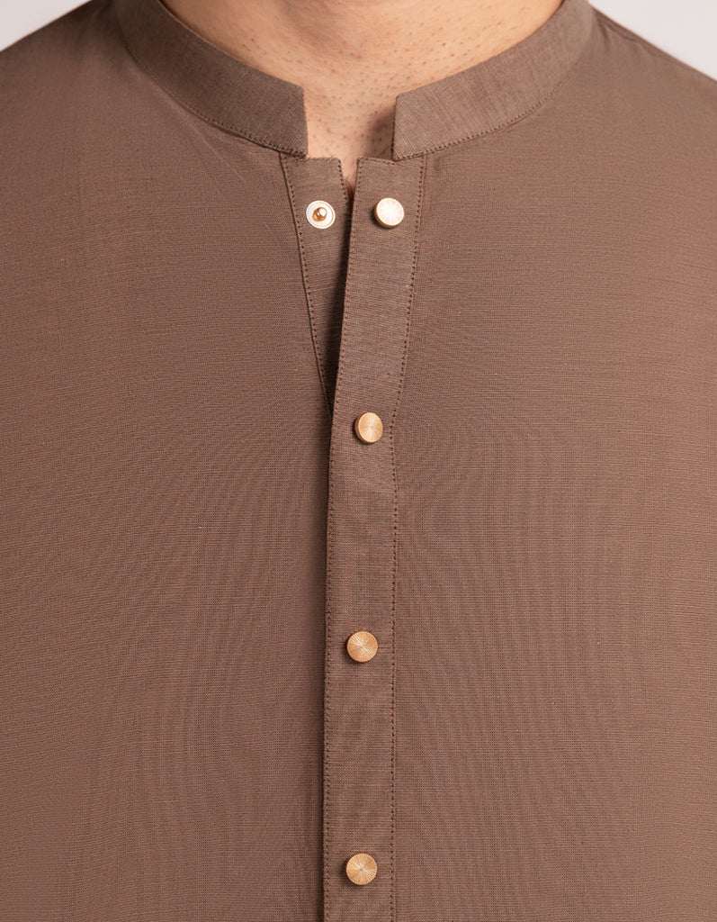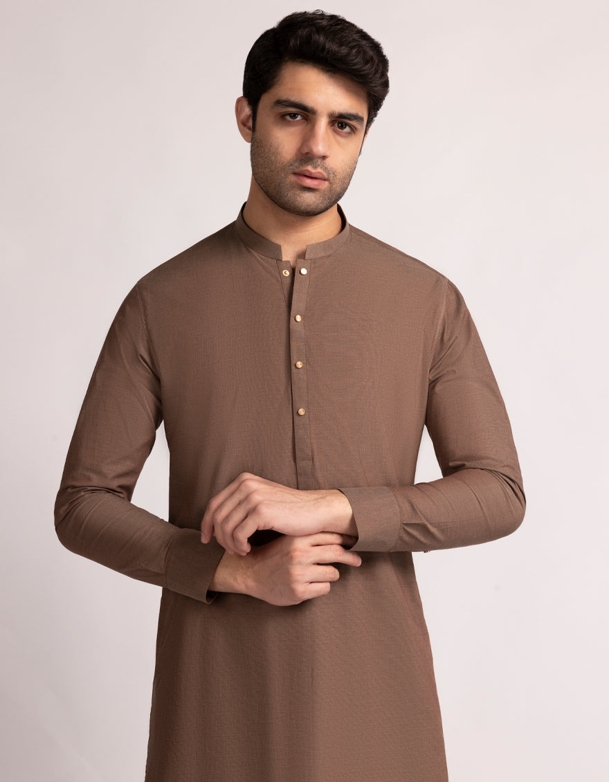 A classic eastern wear set designed with clean stitching and thoughtful detailing. The brown cotton casual kameez shalwar offers a neat look & comfortable fit - ideal for long wear, daily use, or special occasions with a touch of tradition.