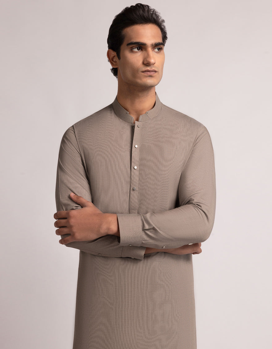 A classic eastern wear set designed with clean stitching and thoughtful detailing. The Light Brown Cotton Casual Kameez Shalwar offers a neat look & comfortable fit - ideal for long wear, daily use, or special occasions with a touch of tradition.