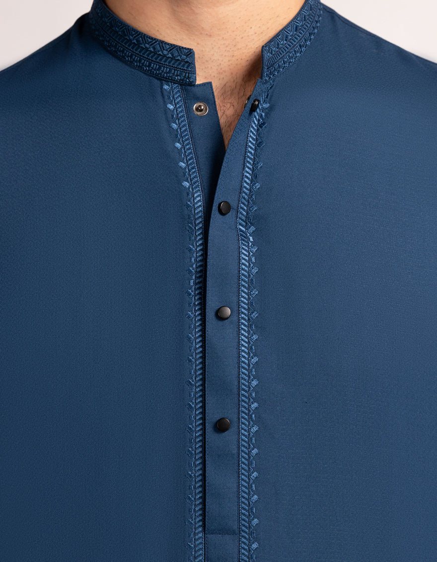 A classic eastern wear set designed with clean stitching and thoughtful detailing. The Blue Semi-Formal Kameez Shalwar offers a neat look & comfortable fit - ideal for long wear, daily use, or special occasions with a touch of tradition.