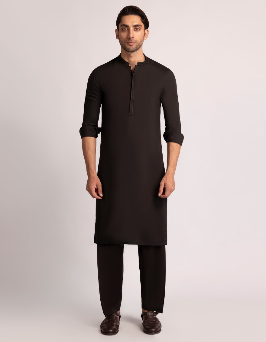 A classic eastern wear set designed with clean stitching and thoughtful detailing. The Dark Brown Semi-Formal Kameez Shalwar offers a neat look & comfortable fit - ideal for long wear, daily use, or special occasions with a touch of tradition.