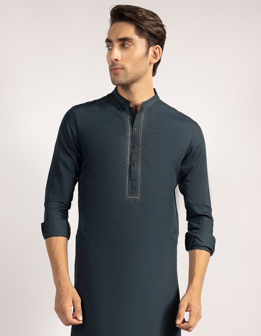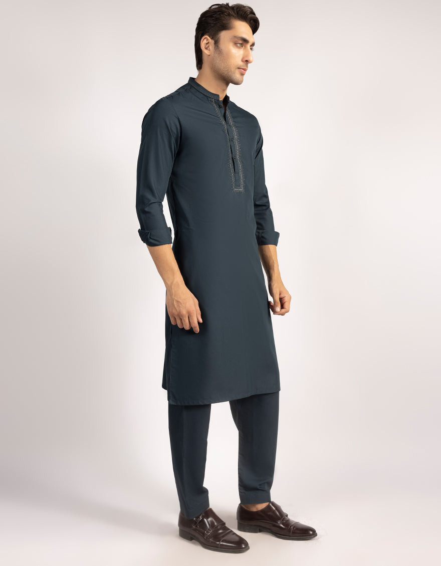 A classic eastern wear set designed with clean stitching and thoughtful detailing. The Dark Green Blended Semi-Formal Kameez Shalwar offers a neat look & comfortable fit - ideal for long wear, daily use, or special occasions with a touch of tradition.