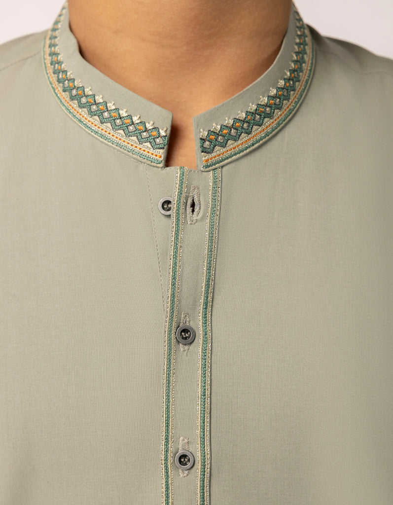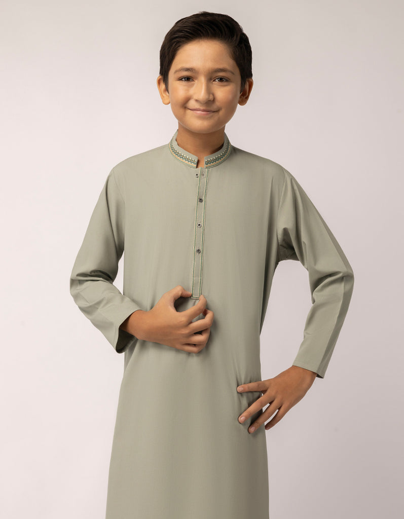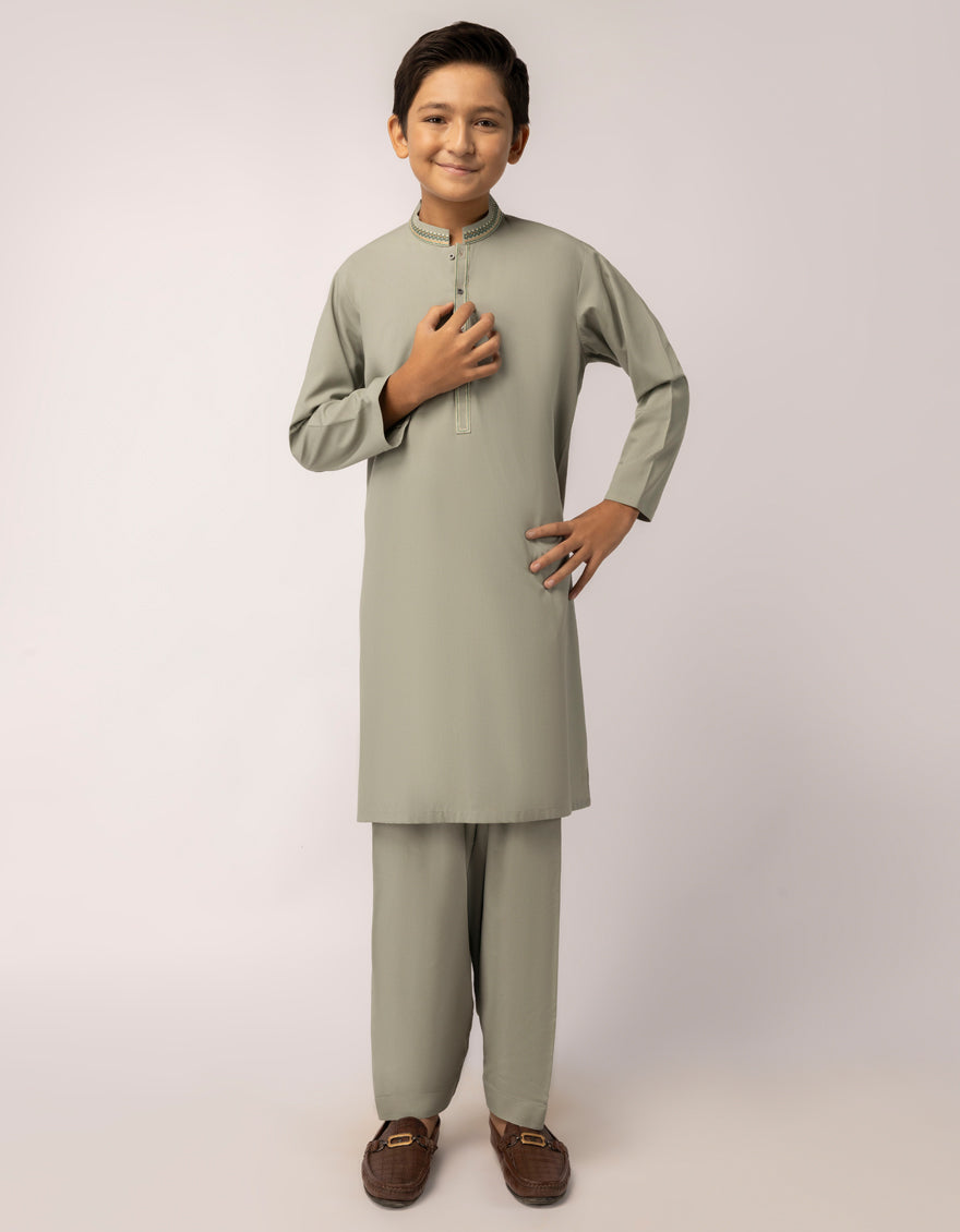 A comfortable and classic Cement Green Semi Formal Kameez Shalwar made for little boys. Easy to wear and perfect for everyday use or special days. Neat stitching and a smart look keep your child looking tidy and well-dressed.