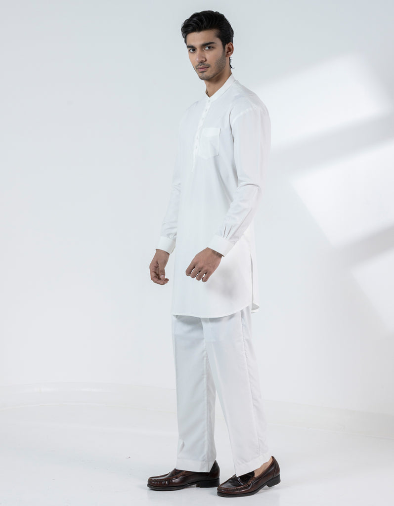 A classic eastern wear set designed with clean stitching and thoughtful detailing. The Off White Blended Casual Kameez Shalwar offers a neat look & comfortable fit - ideal for long wear, daily use, or special occasions with a touch of tradition.