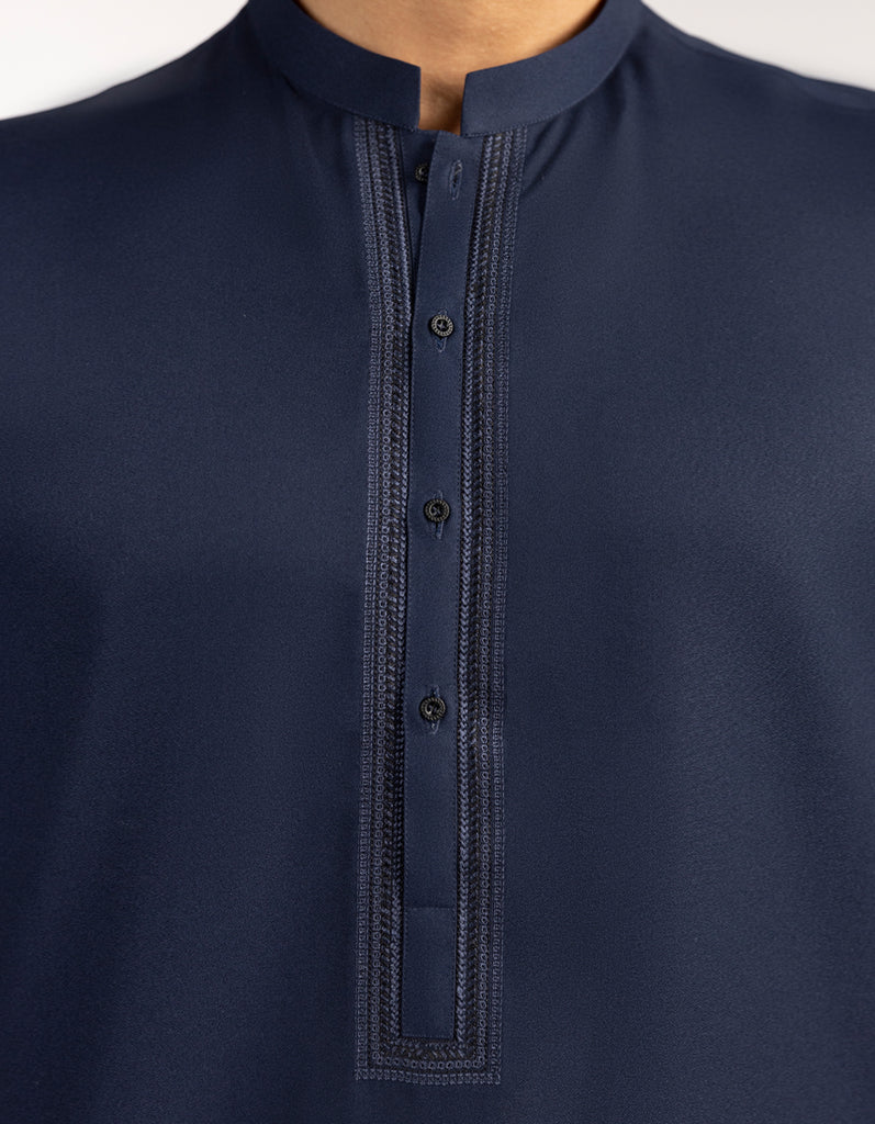 A classic eastern wear set designed with clean stitching and thoughtful detailing. The navy blue semi-formal kurta offers a neat look & comfortable fit - ideal for long wear, daily use, or special occasions with a touch of tradition.