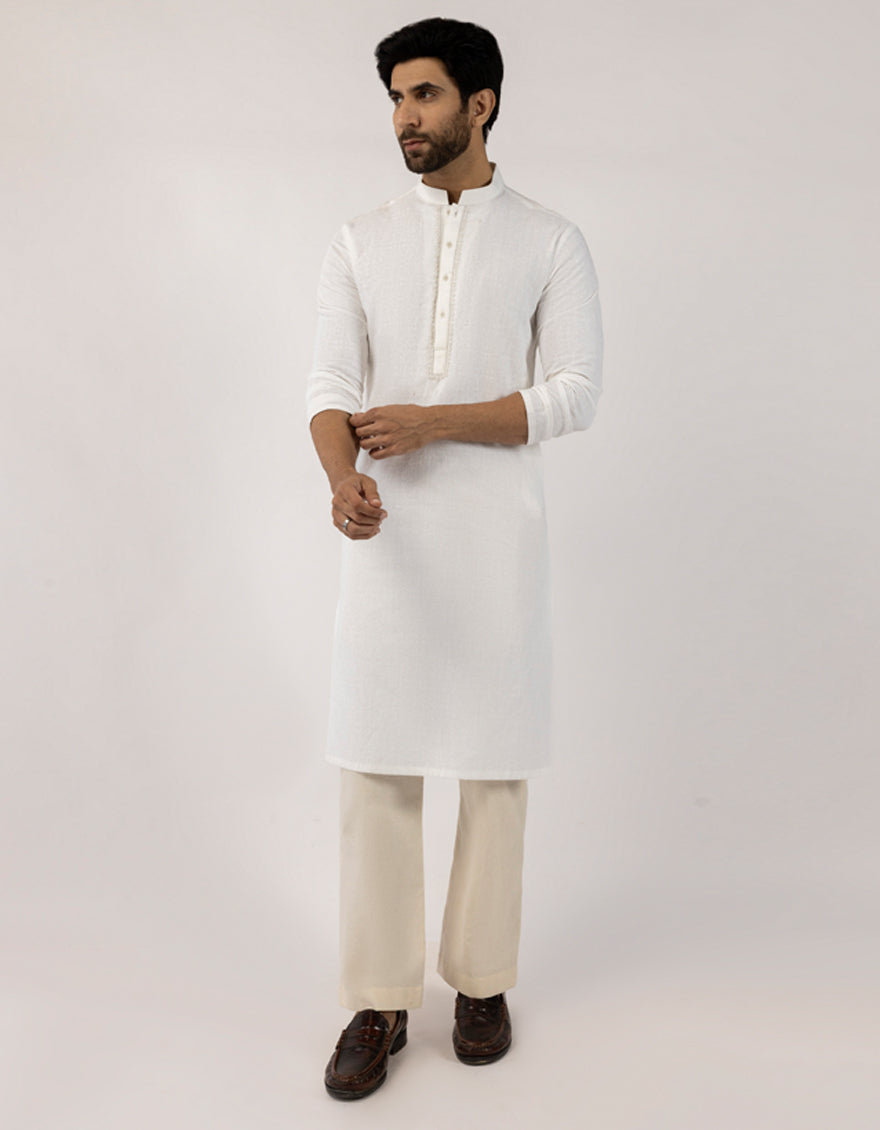 Designed for both tradition and modern style, this White Cotton Formal Kurtais a all-time favorite and versatile choice.
