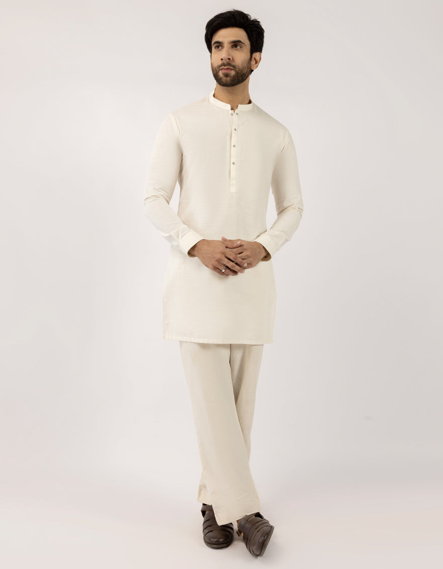 This Cream Cotton Semi-Formal Short Kurta combines classic style with modern simplicity. Featuring a comfortable thigh-length cut, it's designed for easy, everyday wear. The color tone adds versatility, making it a perfect choice for a polished yet laid-back look.