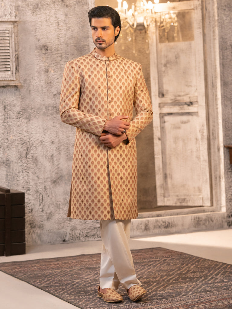 BEIGE FORMAL SHERWANI | AL-SW-156/AM-6048A