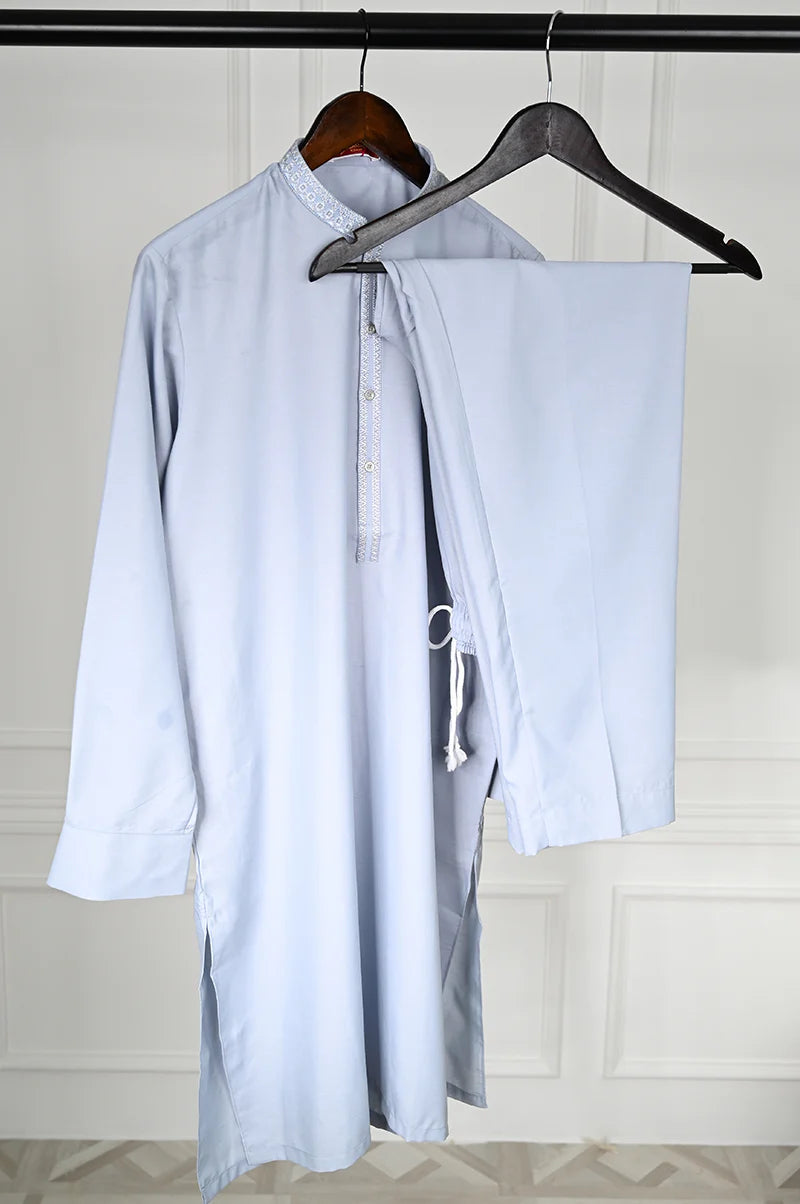 SKY BLUE BLENDED KURTA TROUSERS | JJKP-A-47515/S25/JJ9360-SF