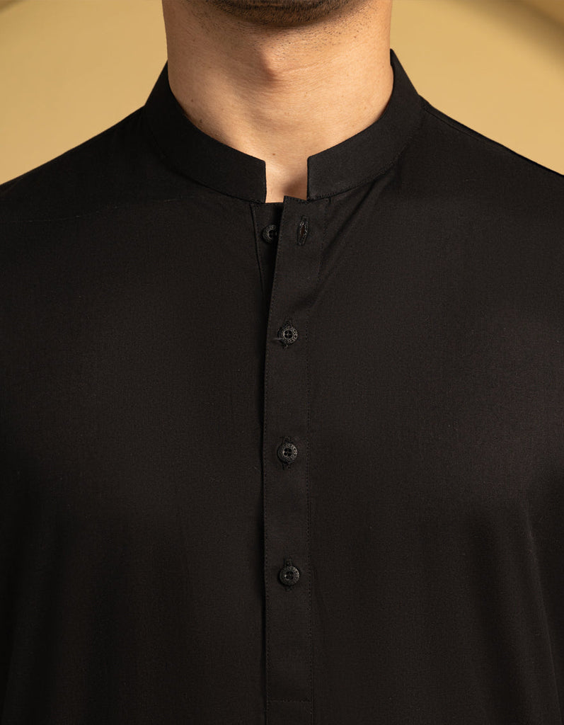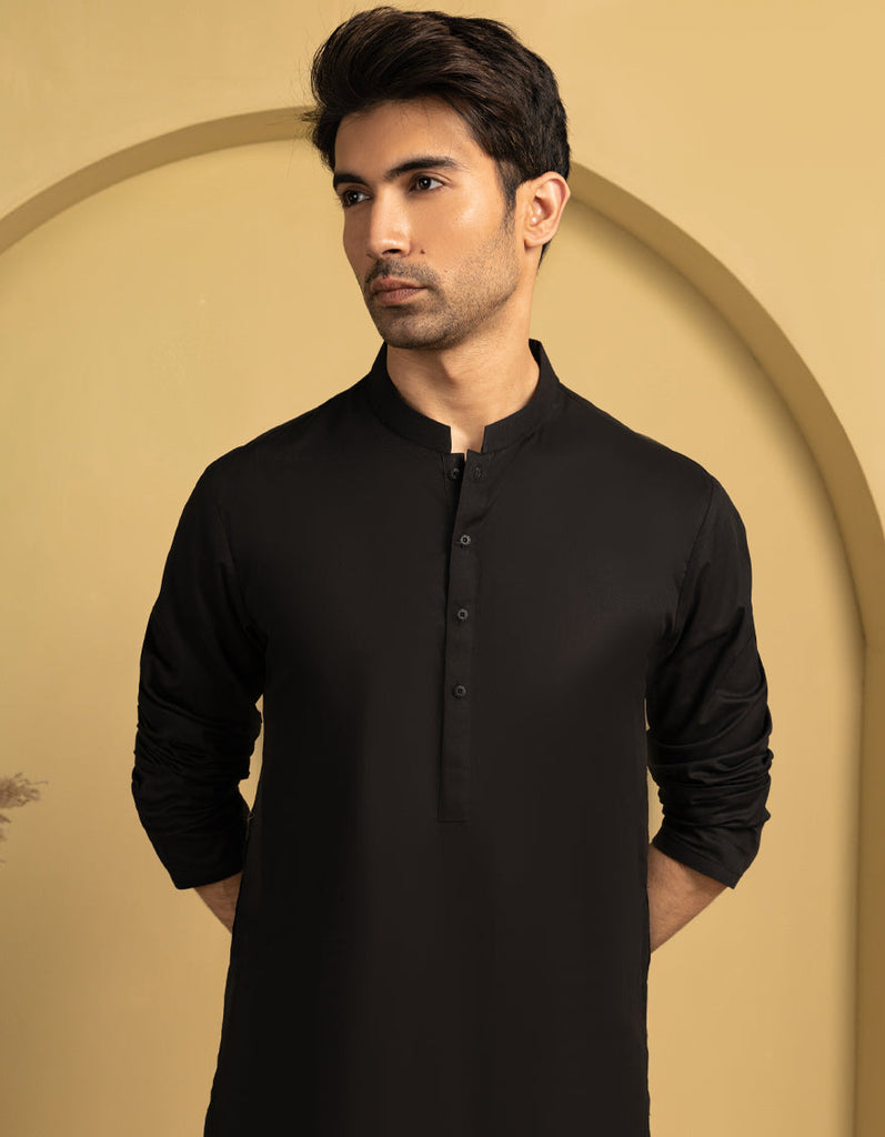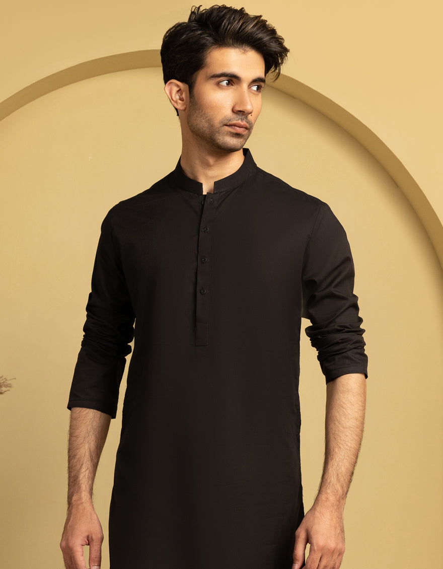 Designed for a sharper, more structured appearance, this Black Cotton Kurta Trousers set offers a modern fit with clean lines. The kurta features subtle detailing, while the straight-cut trousers ensure a neat silhouette. Perfect for events, workdays, or weekend wear.