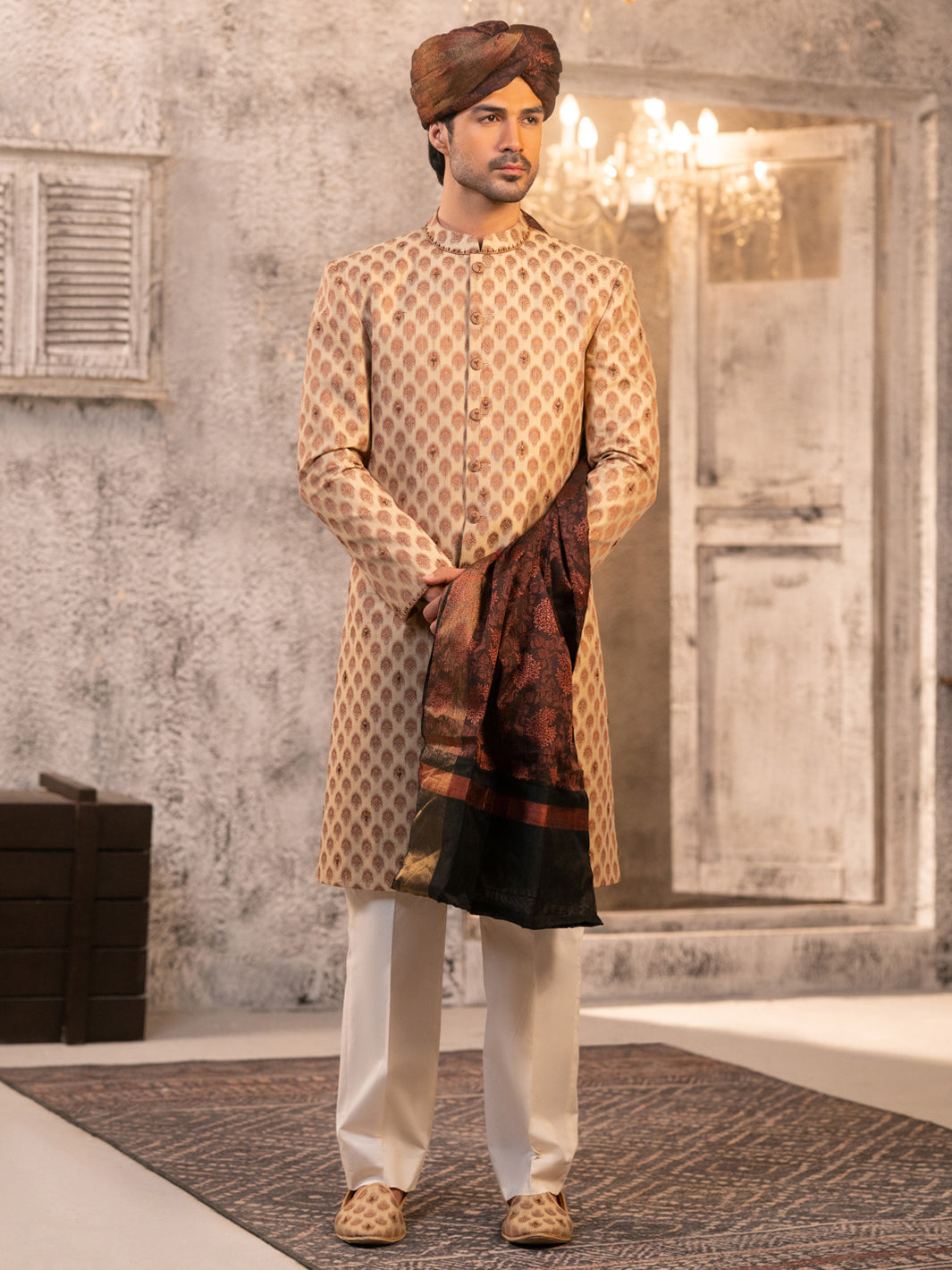 BEIGE FORMAL SHERWANI | AL-SW-160/AM-15020A