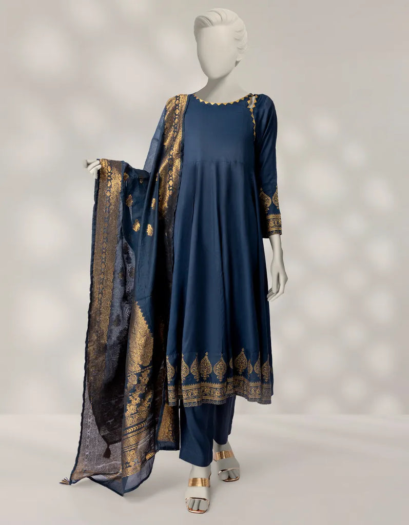BLUE MAPLE SILK 3PC STITCHED | JLAWN-W-25-314/S ROYAL-2