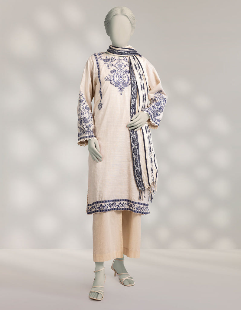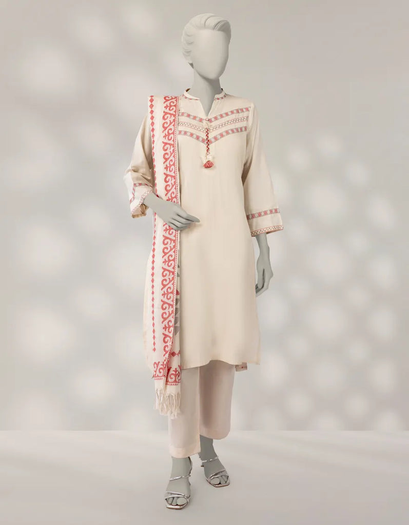 CREAM JACQUARD 3PC STITCHED | JLAWN-W-25-354/S RALLI-05