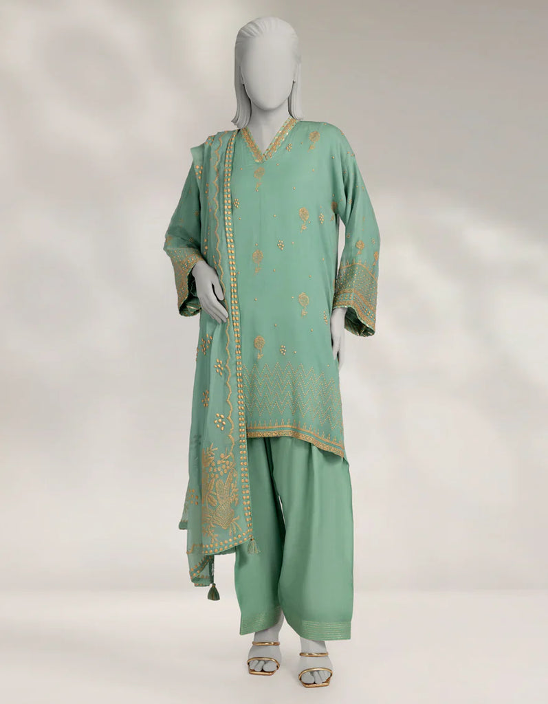 GREEN IMPURE CHIFFON 3PC STITCHED | JLAWN-W-25-322/S KAMDANI-02