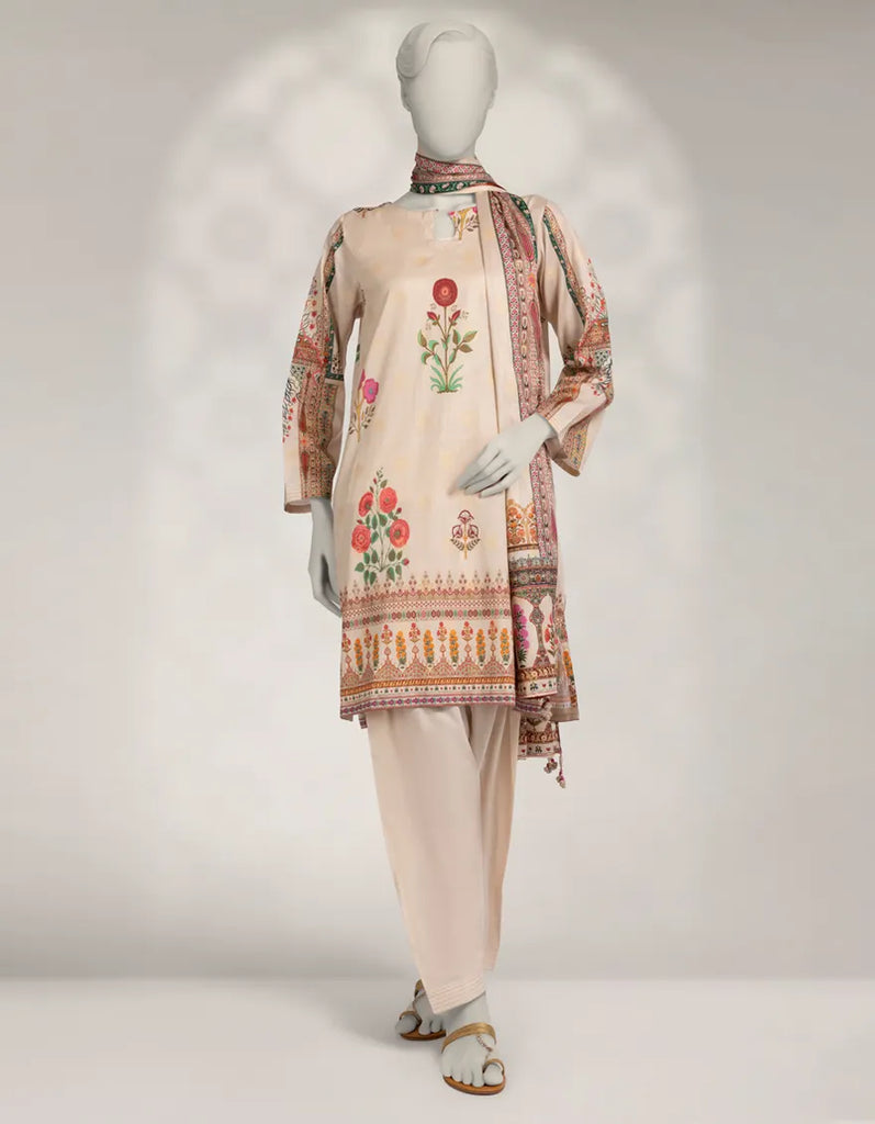 BEIGE DOBBY 3PC STITCHED | JLAWN-W-25-318/S VINTAGE FLORAL-02
