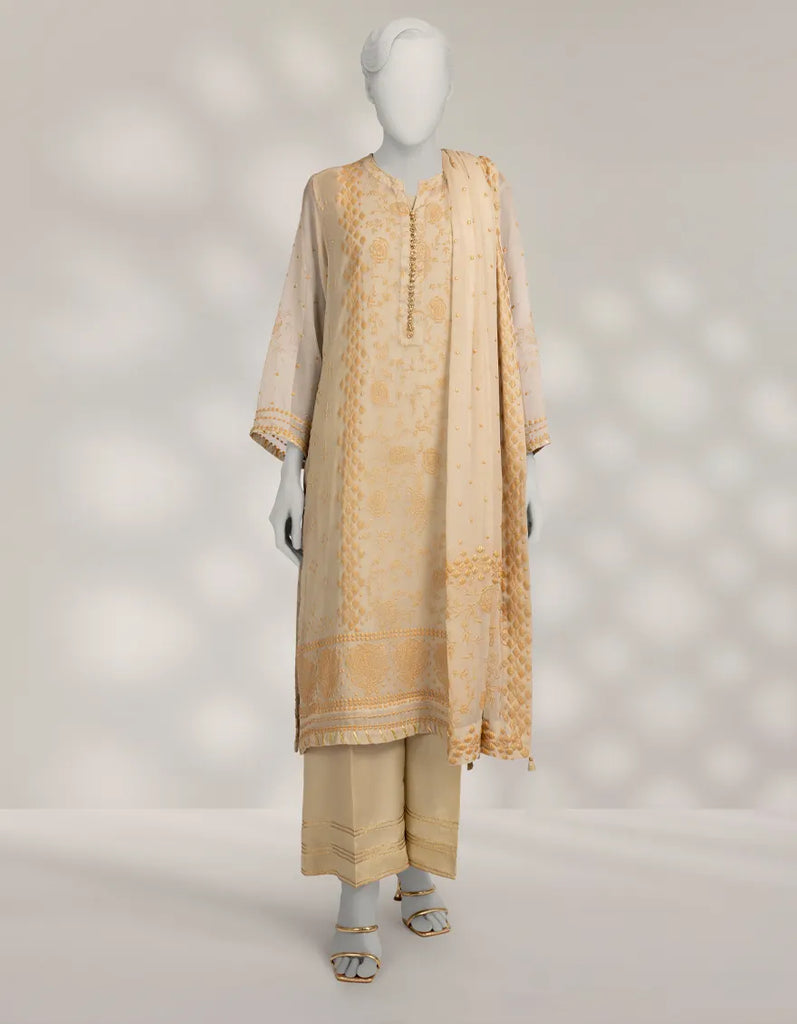 BEIGE JACQUARD 3PC STITCHED | JLAWN-W-25-310/S MUGHAL BAGH-02