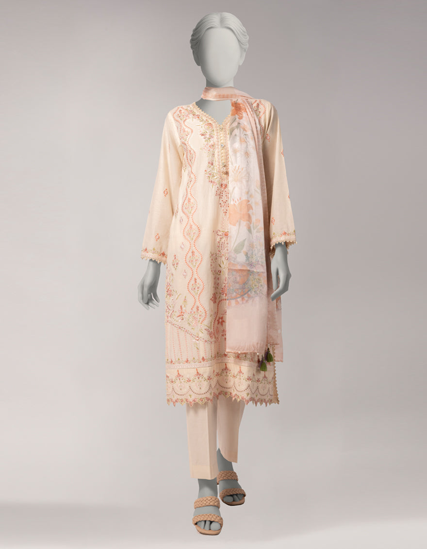 PEACH LAWN 3PC STITCHED | JLAWN-S-26-1114/S LUXE-A-04