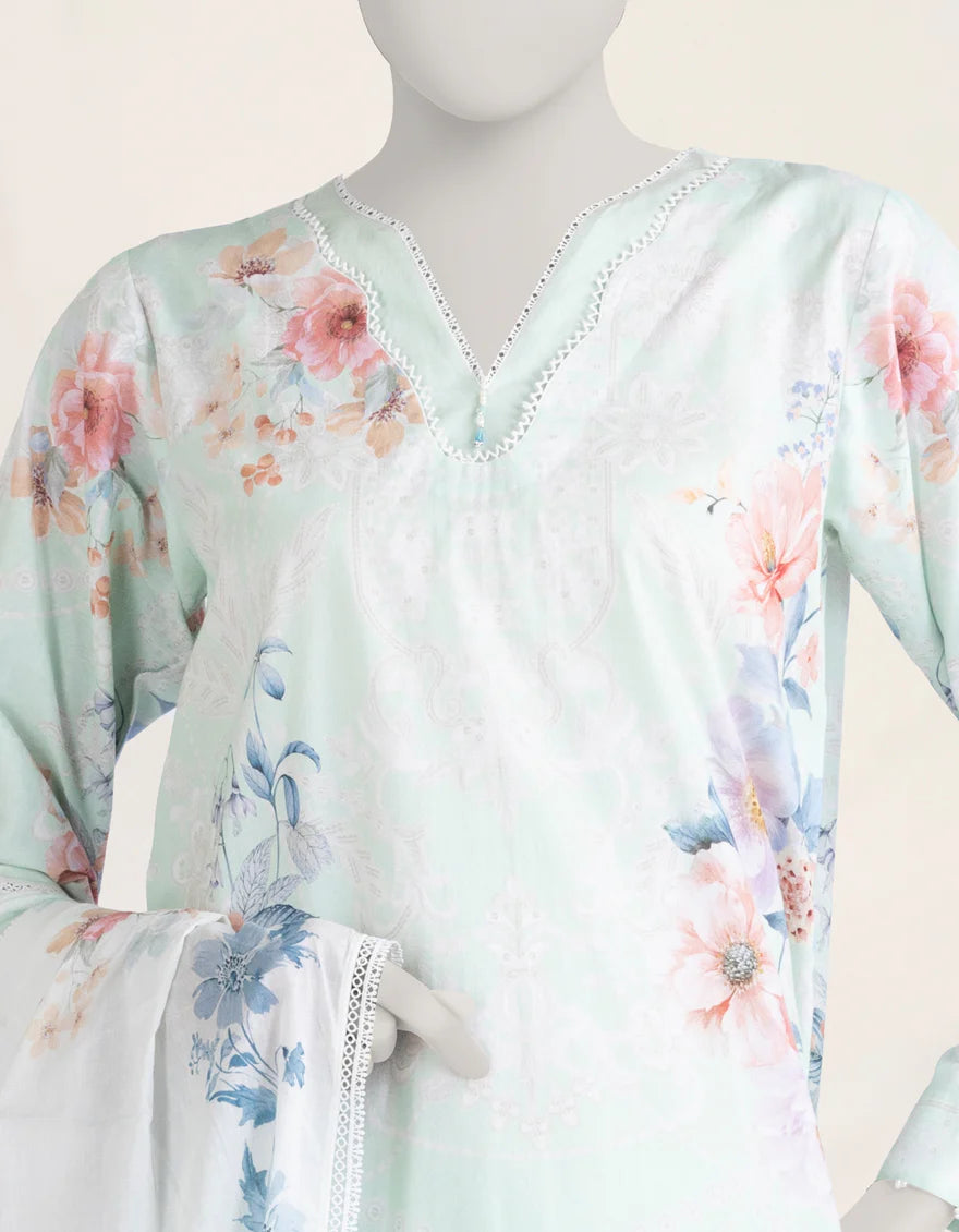 GREEN CAMBRIC 3PC STITCHED|JLAWN-S-25-955/S SOFT FLORALS-3