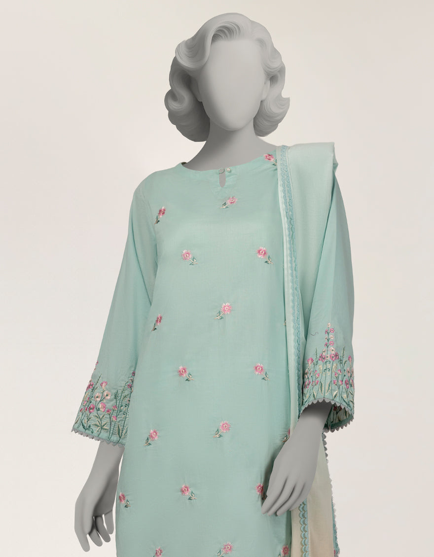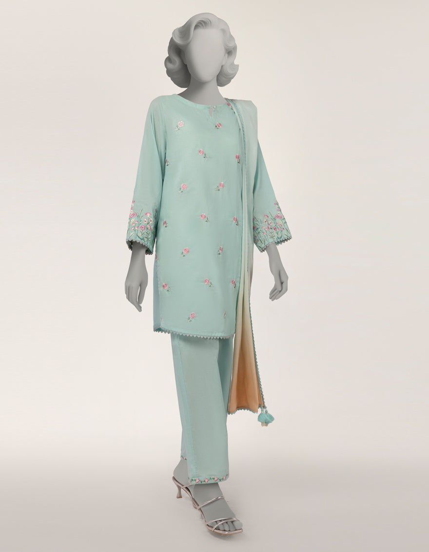 GREEN JACQUARD 3PC STITCHED | JLAWN-S-26-375/S THREAD GARDEN-04