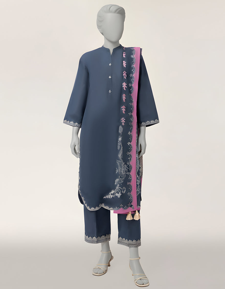 BLUE LAWN 3PC STITCHED | JLAWN-S-26-378/S FOLK PAISLEY-1